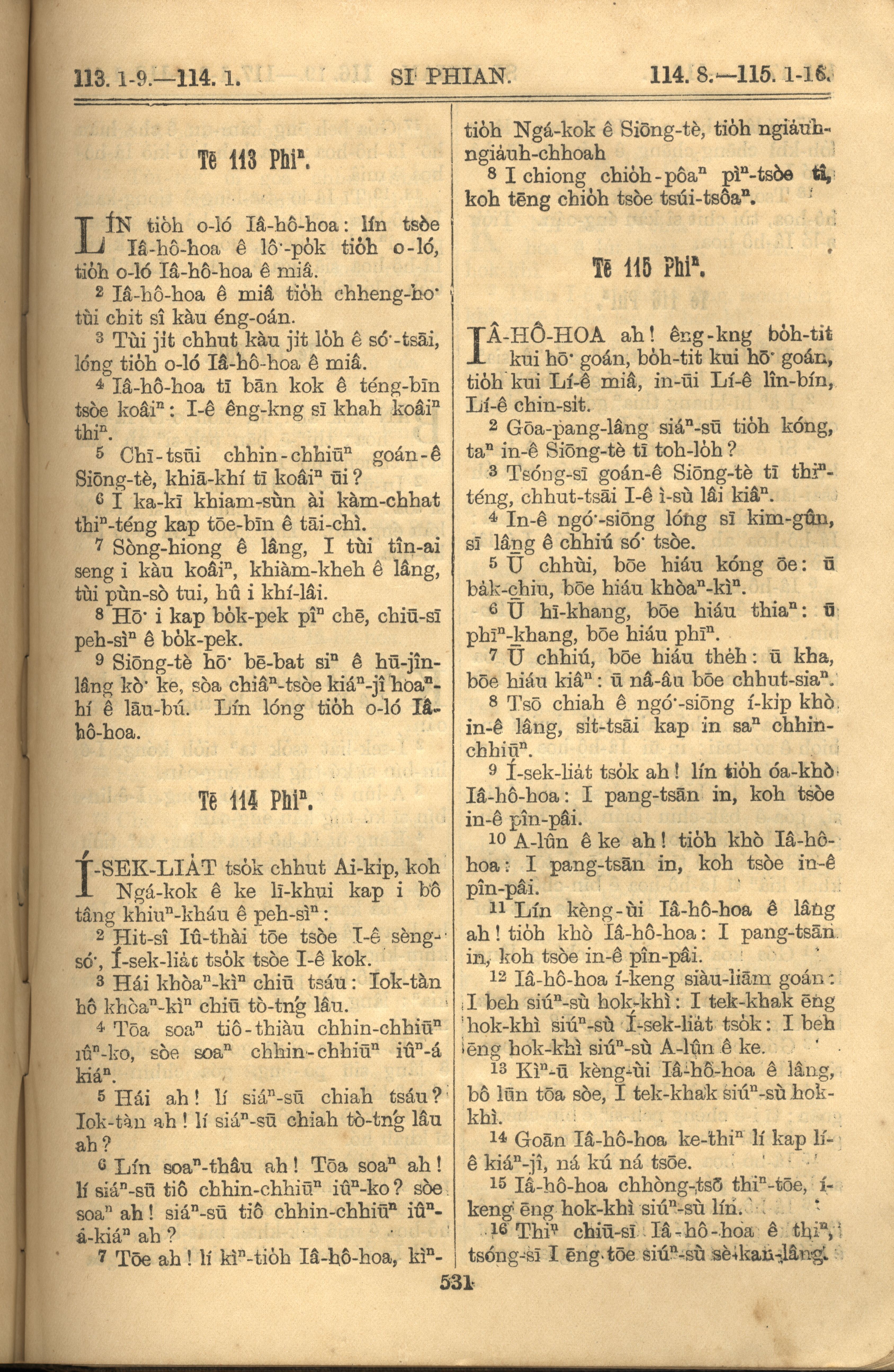 1921年羅馬字舊約全書 詩篇 113 章 1 節到 115 章 16 節