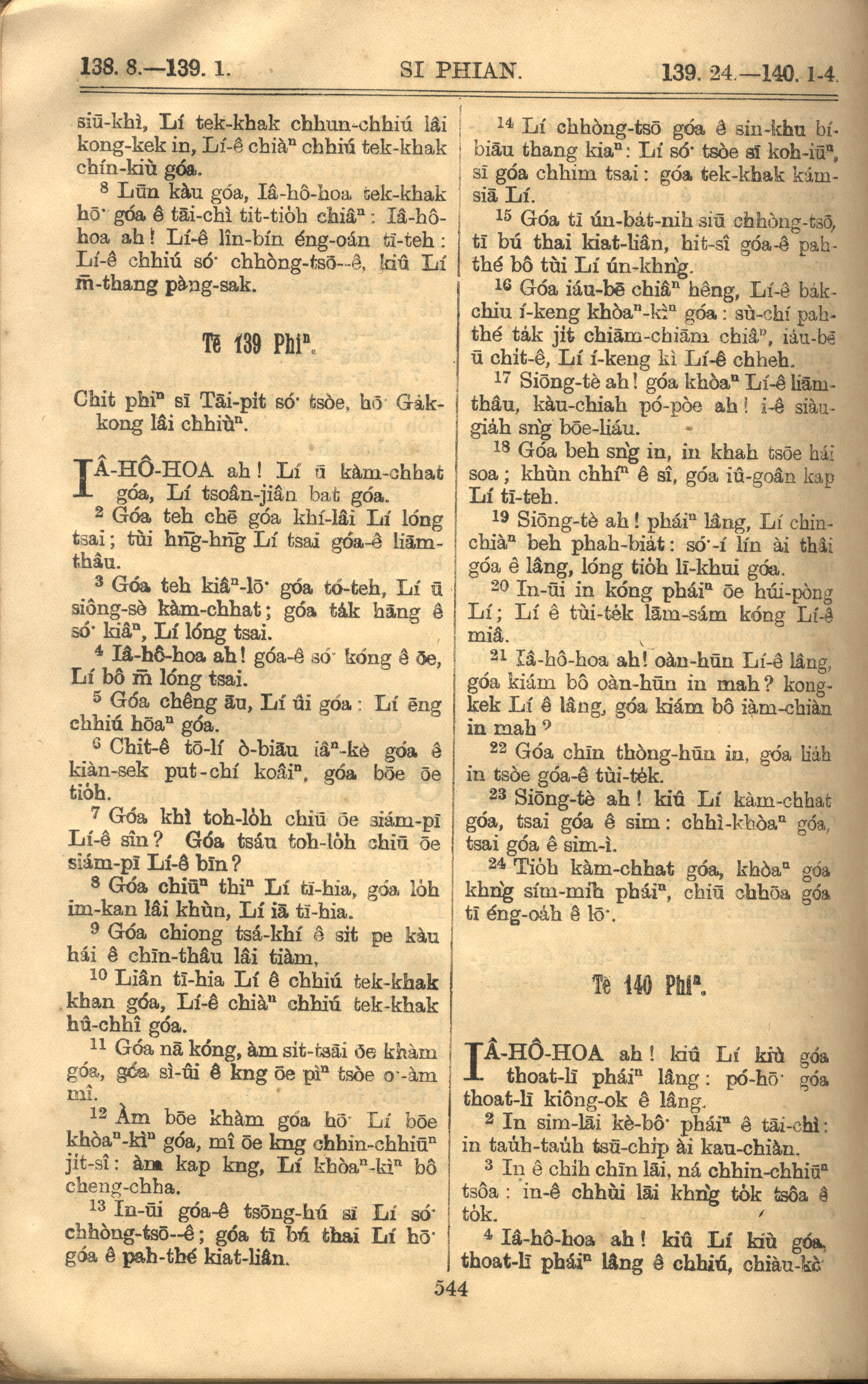 1921年羅馬字舊約全書 詩篇 138 章 8 節到 140 章 4 節