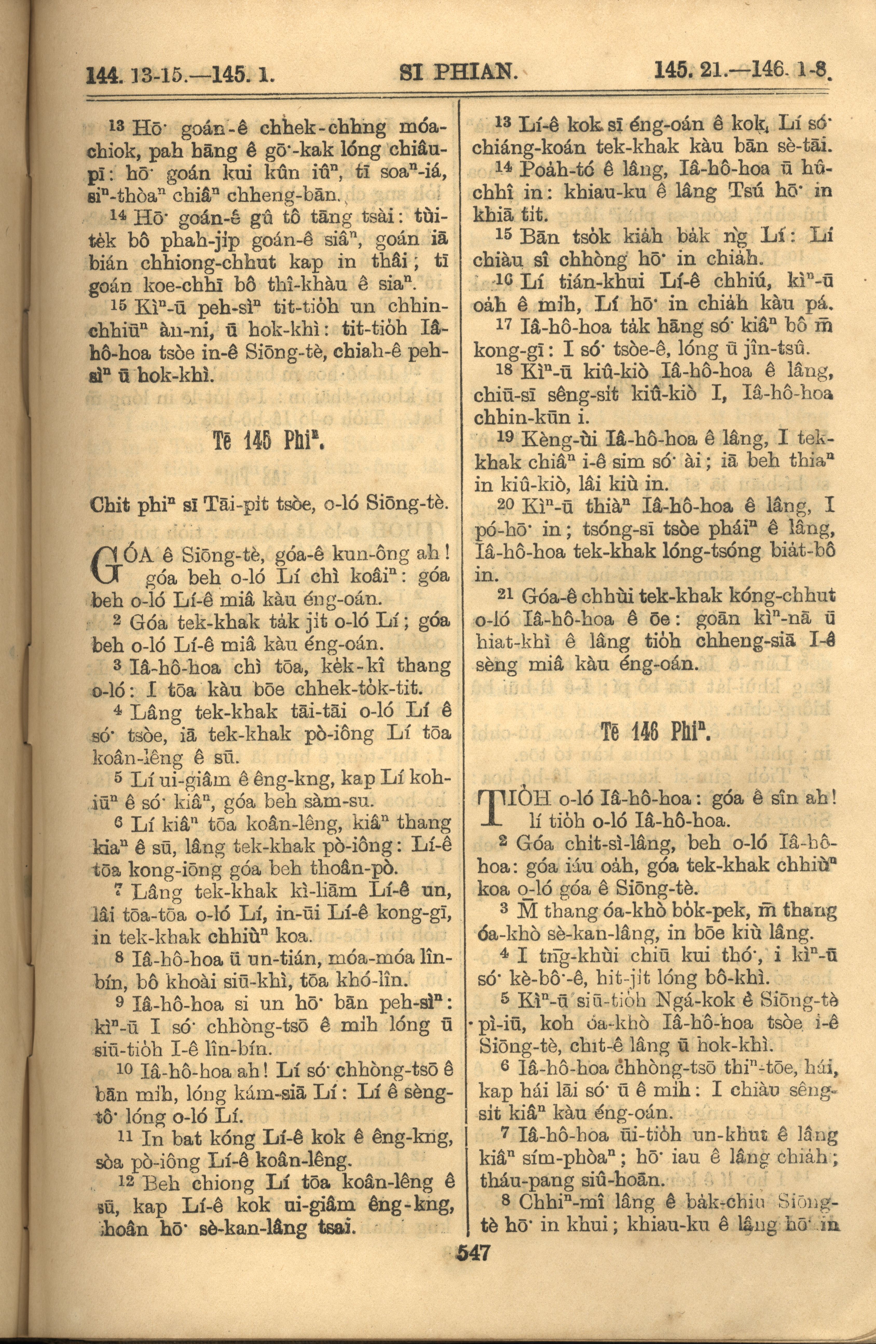 1921年羅馬字舊約全書 詩篇 144 章 13 節到 146 章 8 節