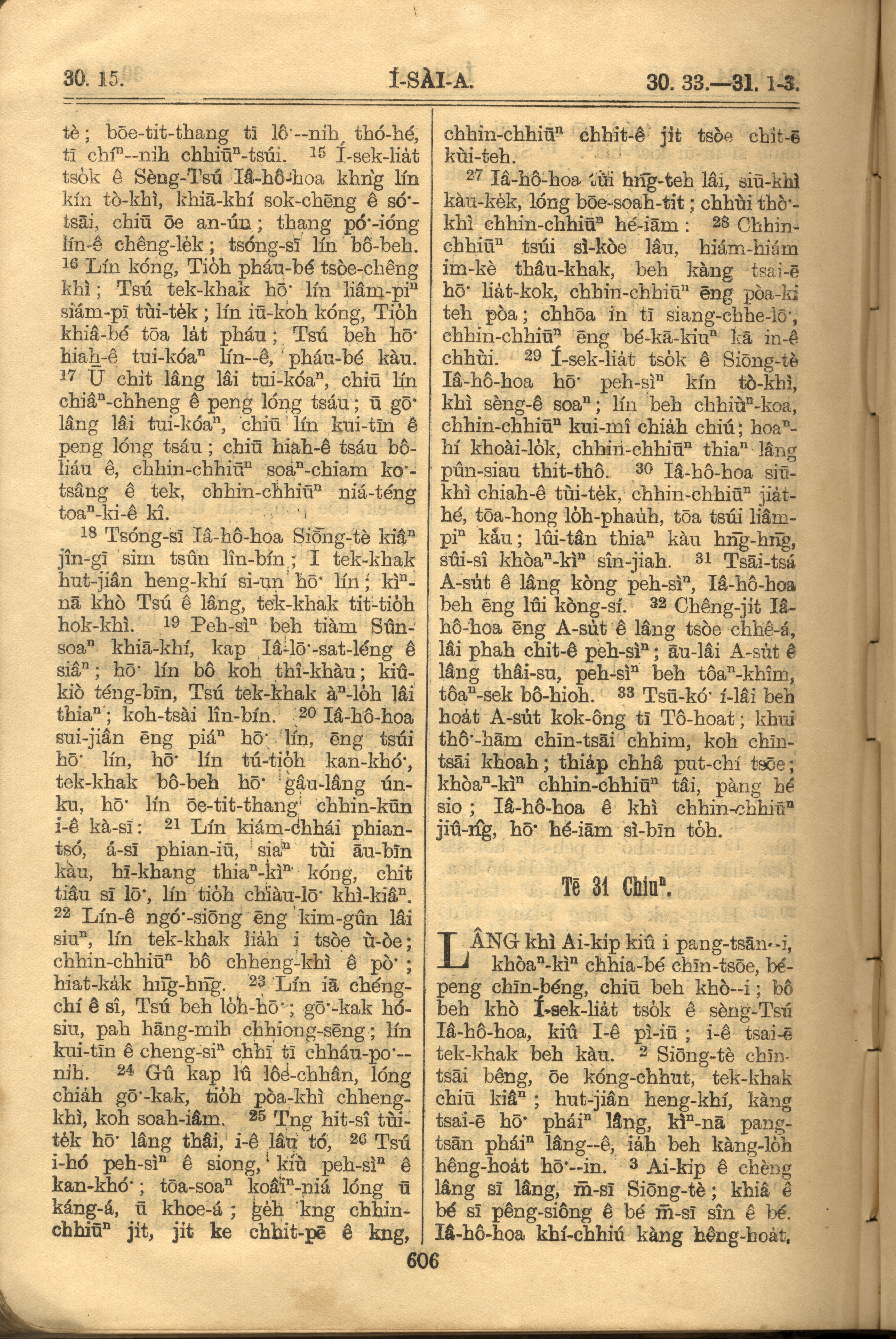 1921年羅馬字舊約全書 以賽亞書 30 章 15 節到 31 章 3 節