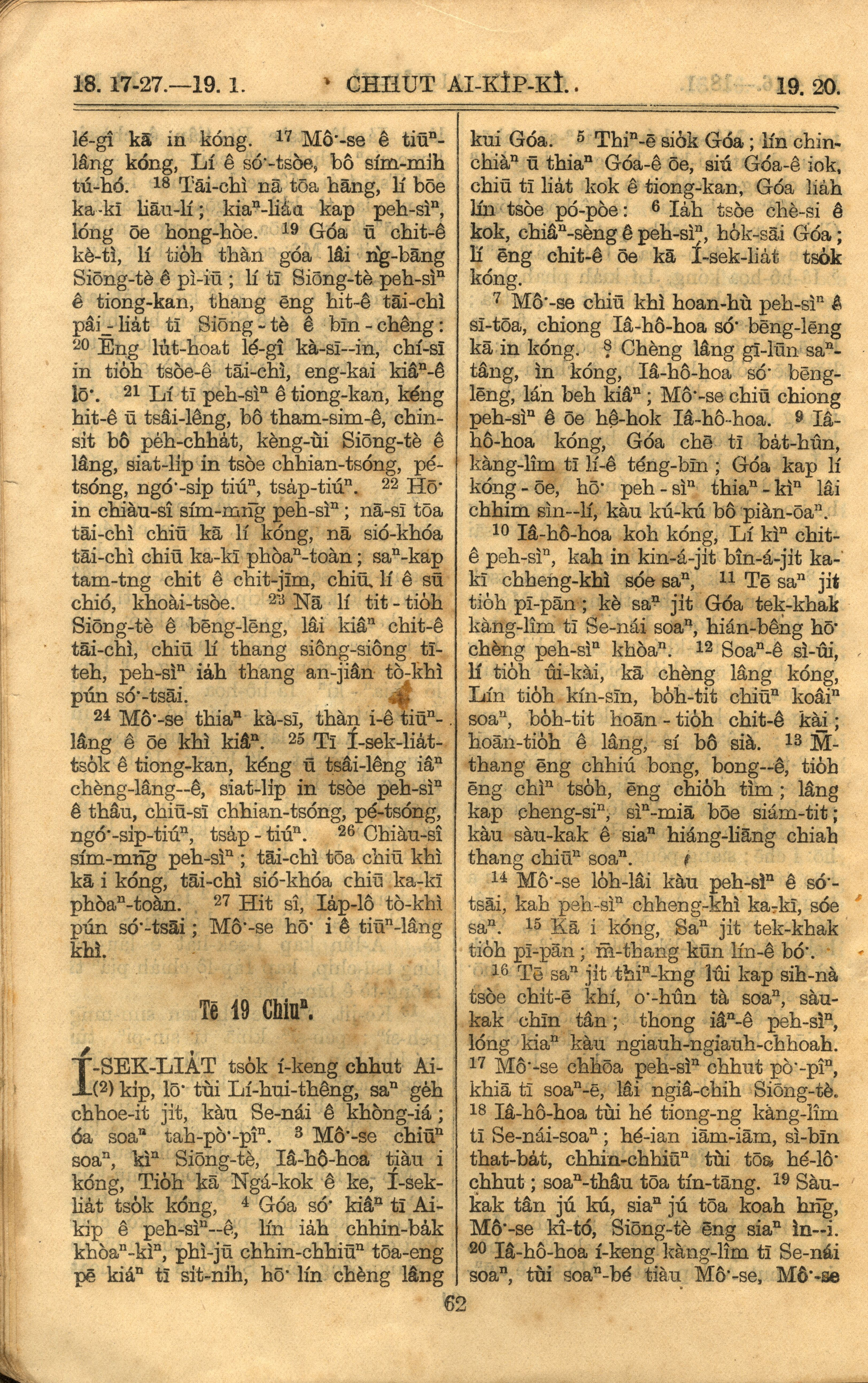 1921年羅馬字舊約全書 出埃及記 18 章 17 節到 19 章 20 節