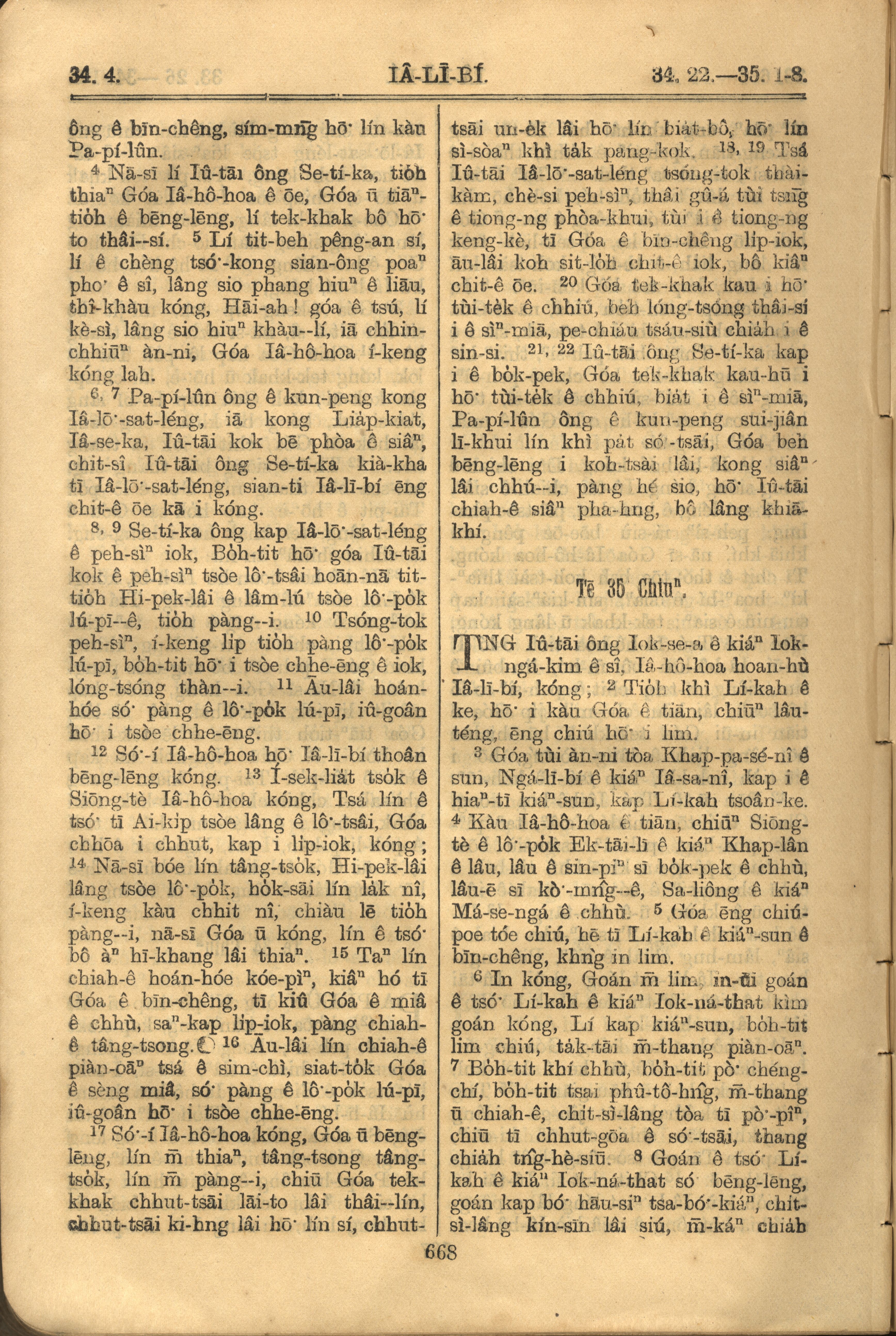 1921年羅馬字舊約全書 耶利米書 34 章 4 節到 35 章 8 節