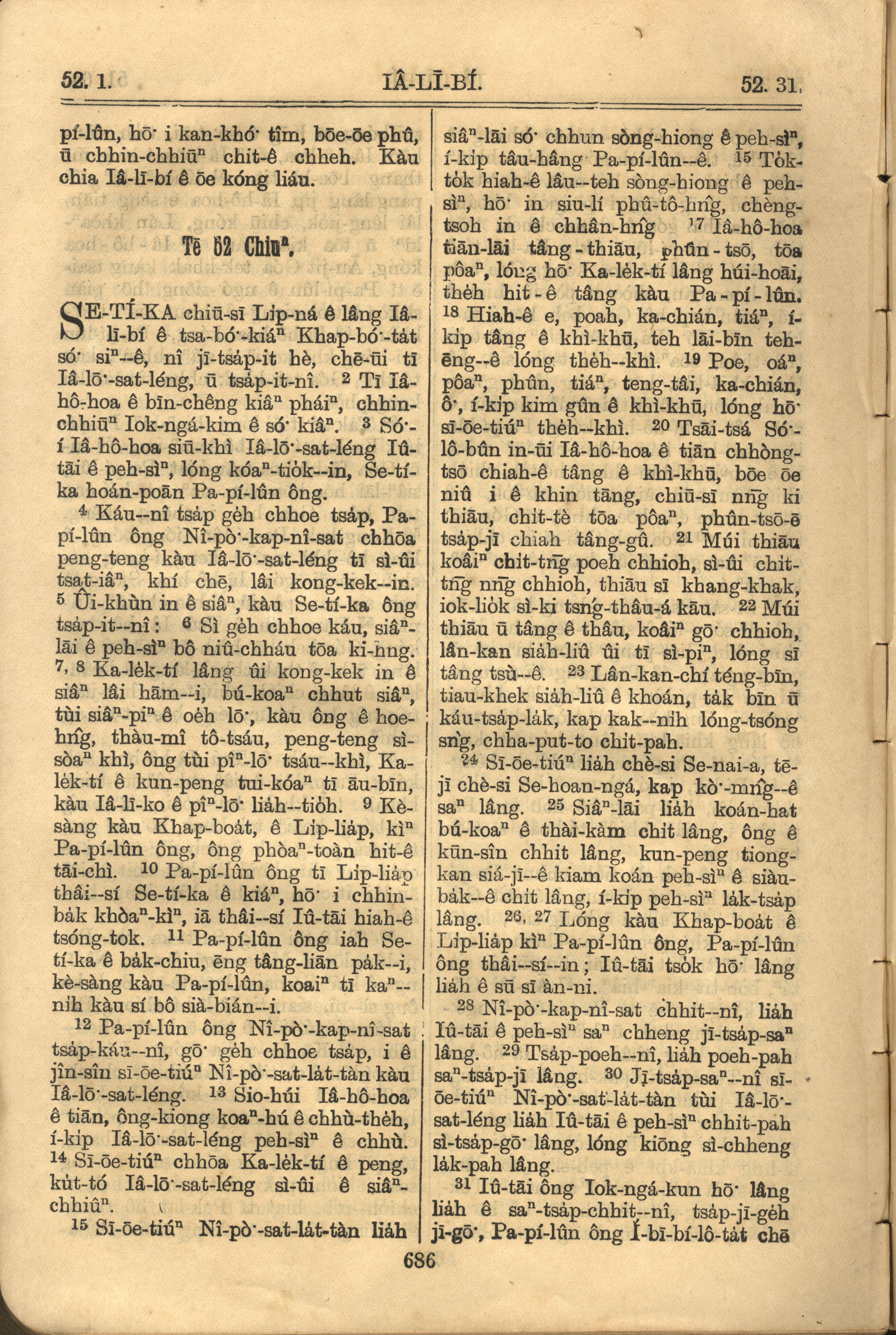 1921年羅馬字舊約全書 耶利米書 52 章 1 節到 52 章 31 節