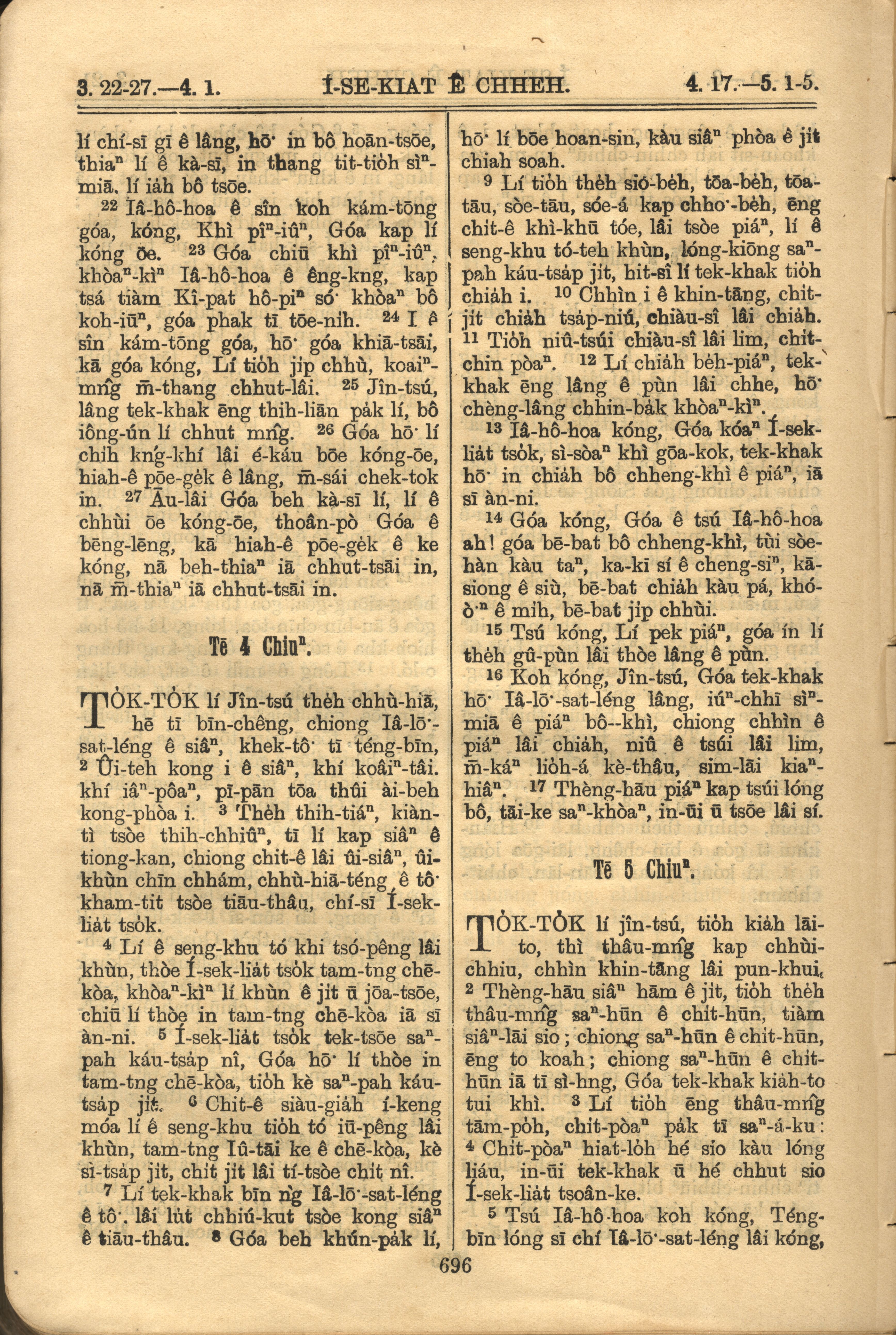 1921年羅馬字舊約全書 以西結書 3 章 22 節到 5 章 5 節