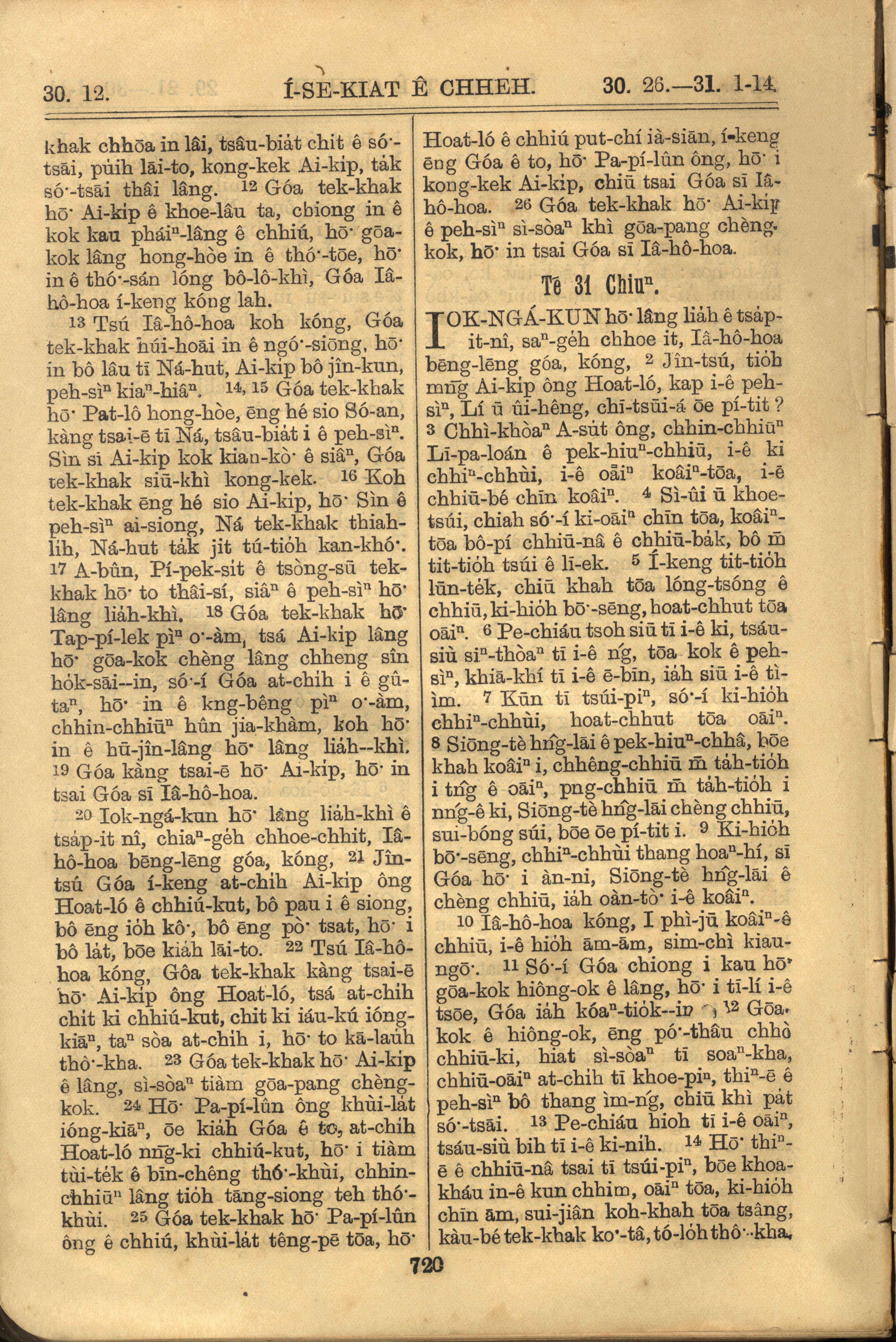 1921年羅馬字舊約全書 以西結書 30 章 12 節到 31 章 14 節