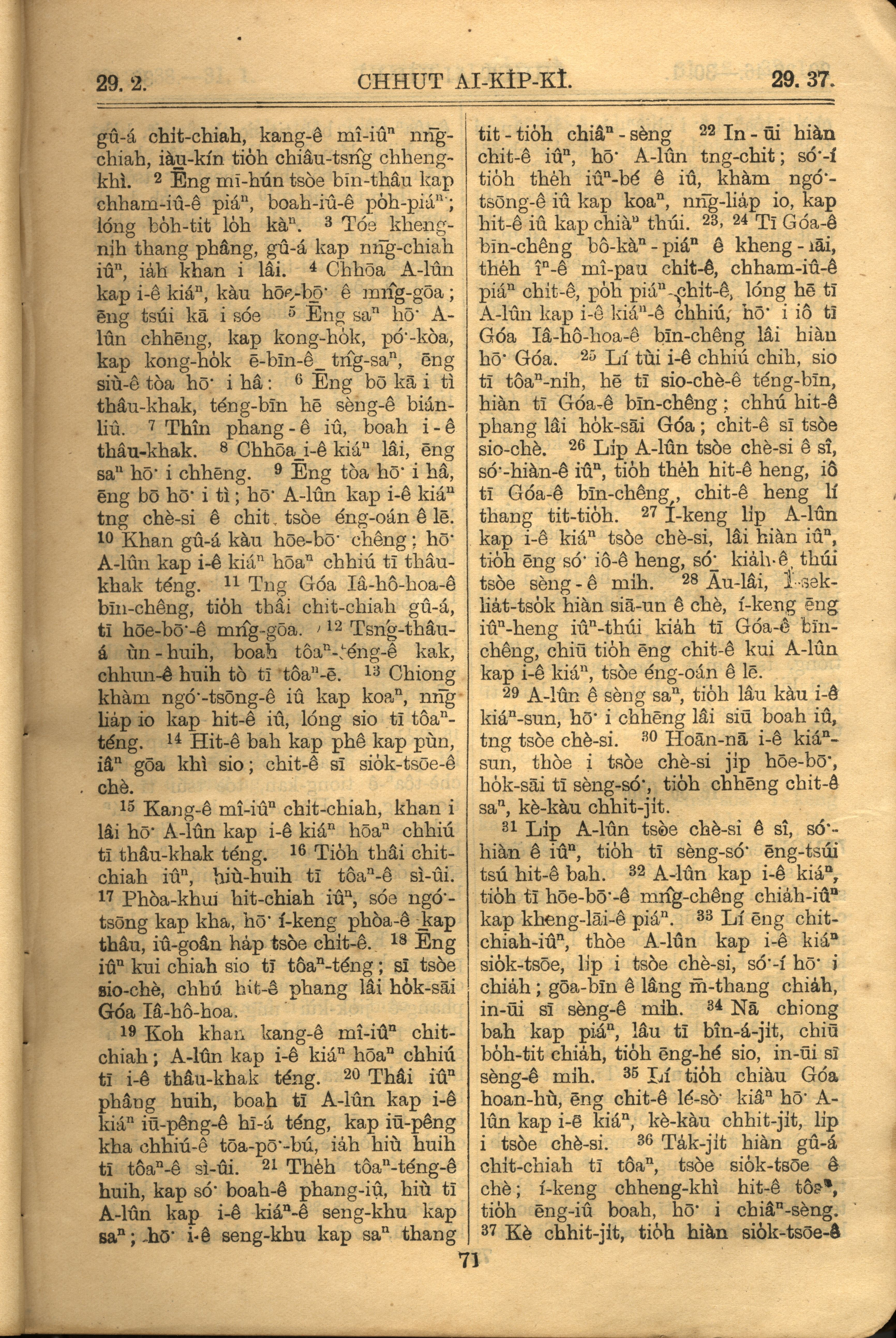 1921年羅馬字舊約全書 出埃及記 29 章 2 節到 29 章 37 節