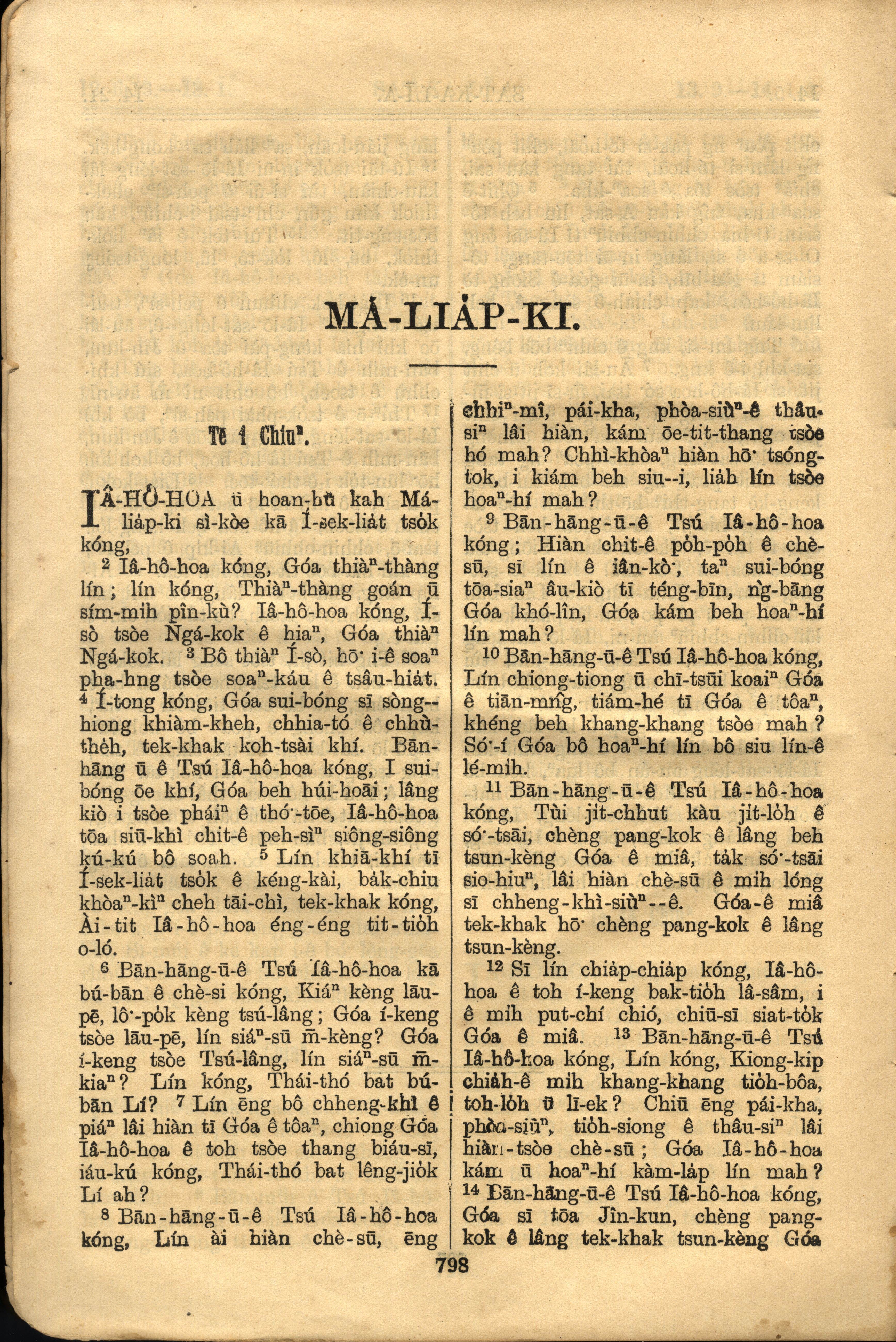1921年羅馬字舊約全書 瑪拉基書 1 章 1 節到 1 章 14 節