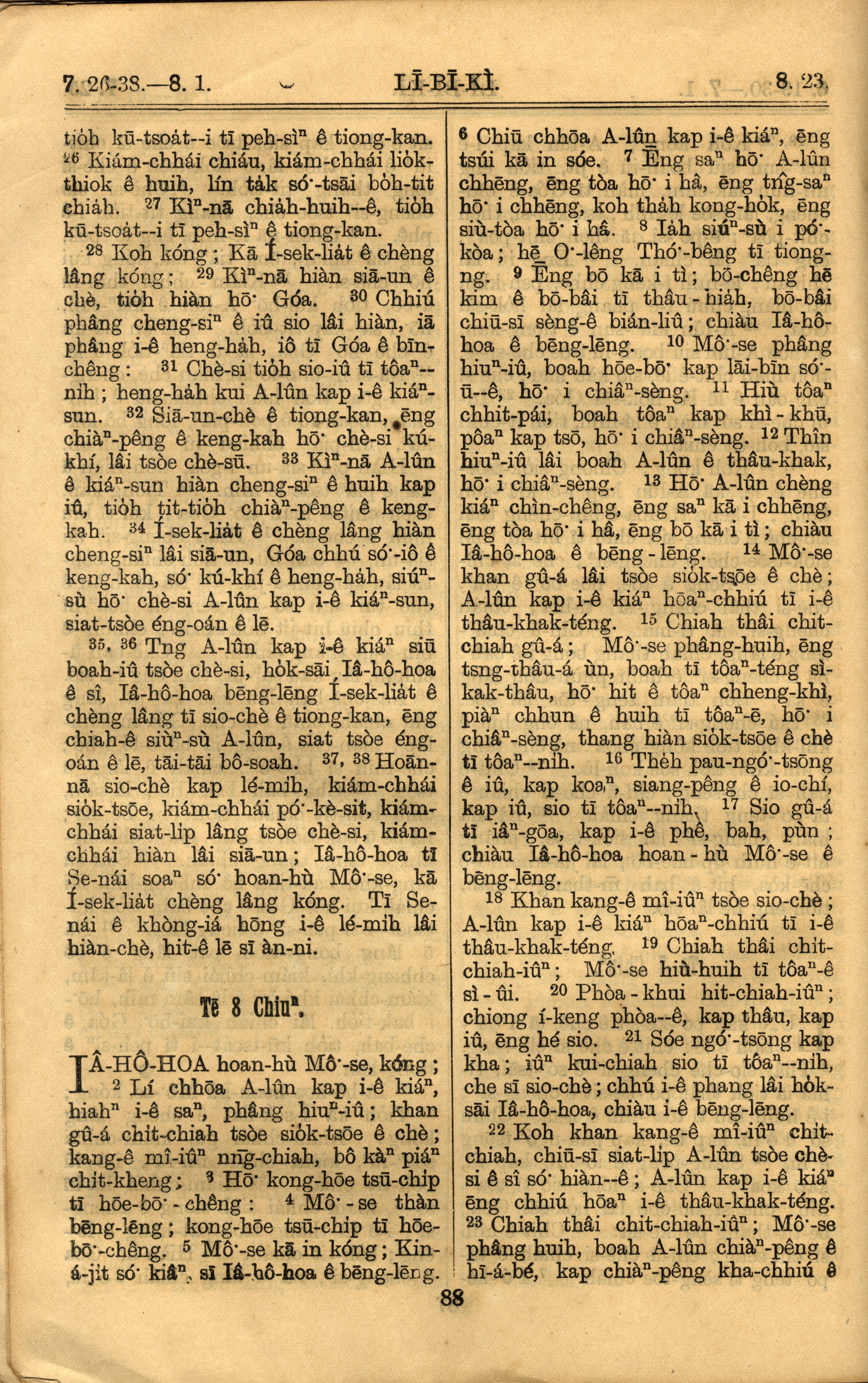 1921年羅馬字舊約全書 利未記 7 章 26 節到 8 章 23 節