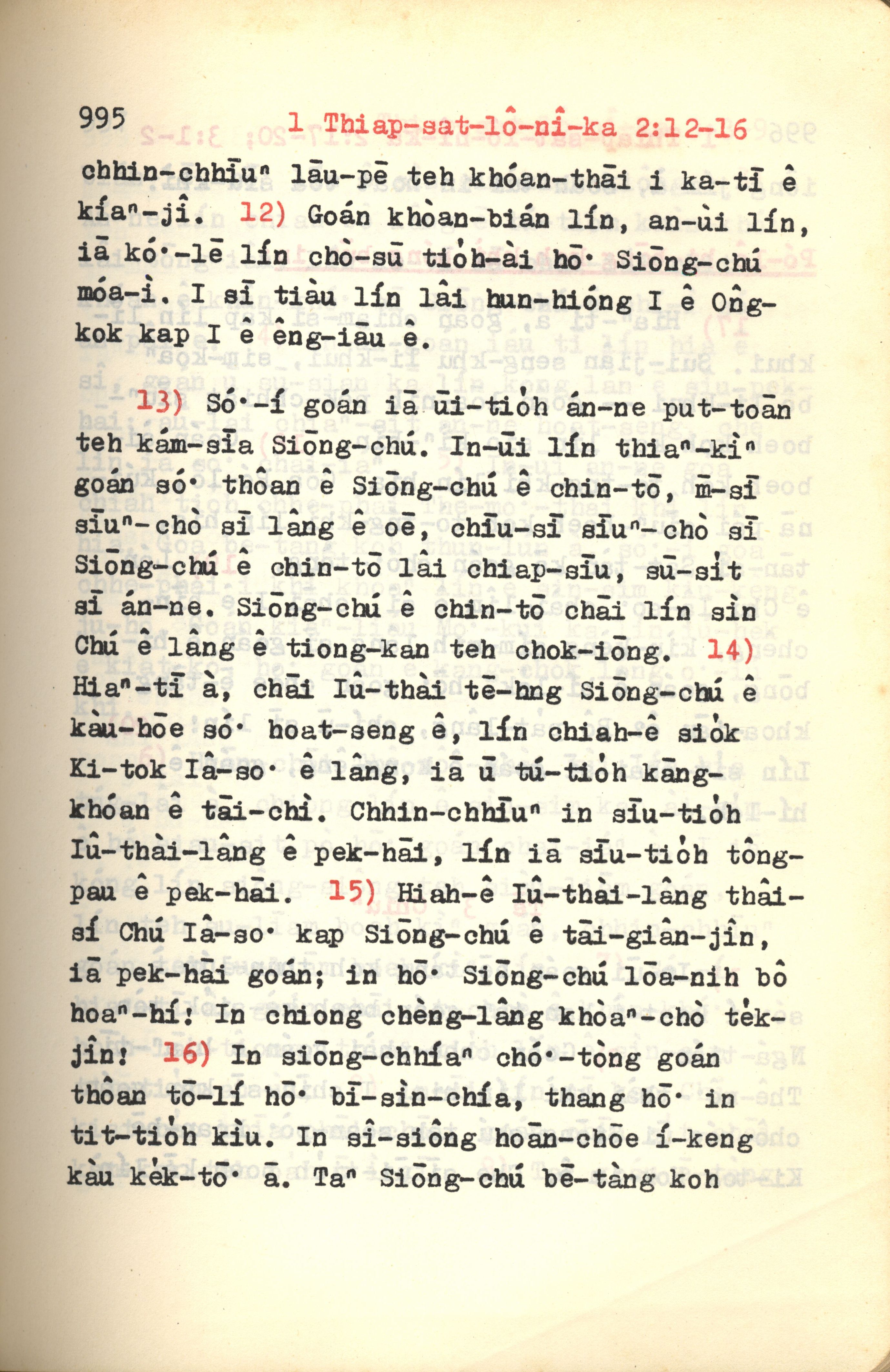 1972年新約紅皮聖經 帖撒羅尼迦前書 2 章 12 節到 2 章 16 節
