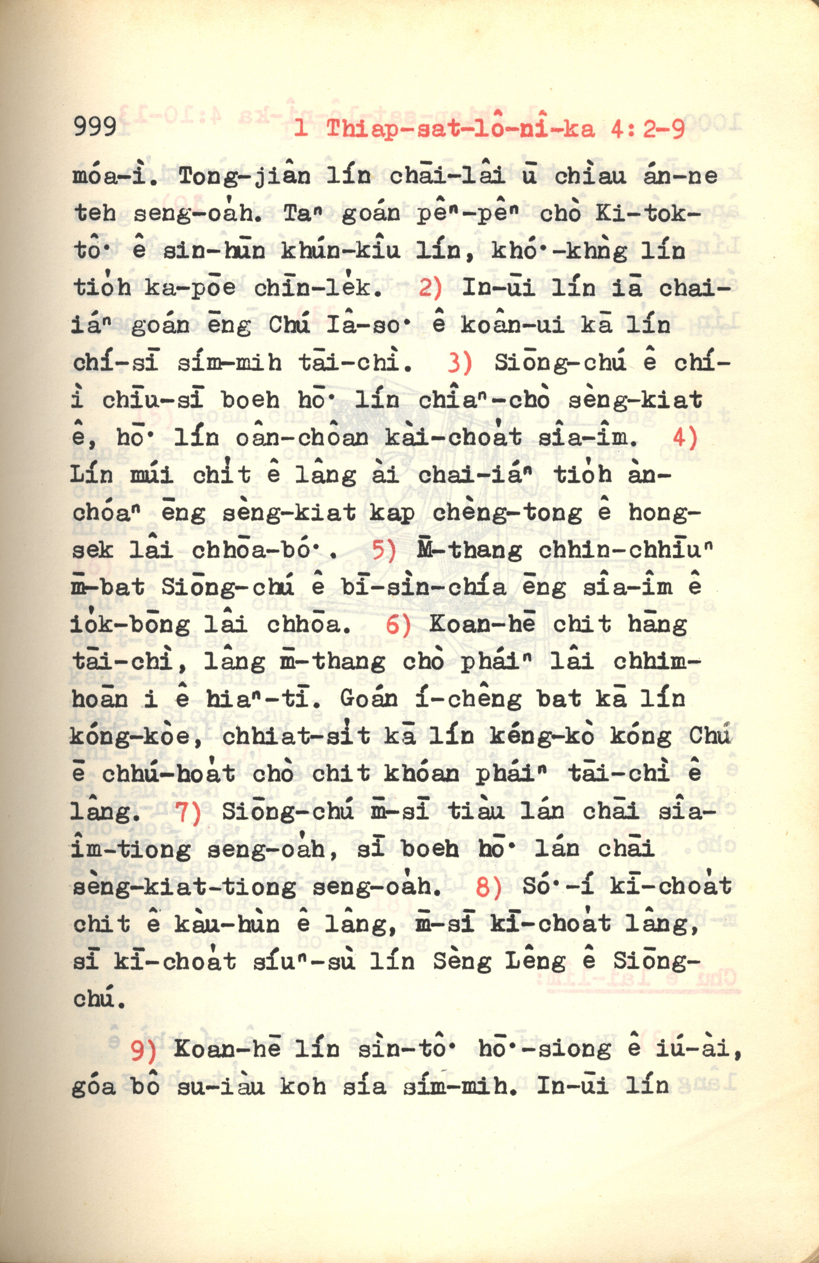 1972年新約紅皮聖經 帖撒羅尼迦前書 4 章 2 節到 4 章 9 節