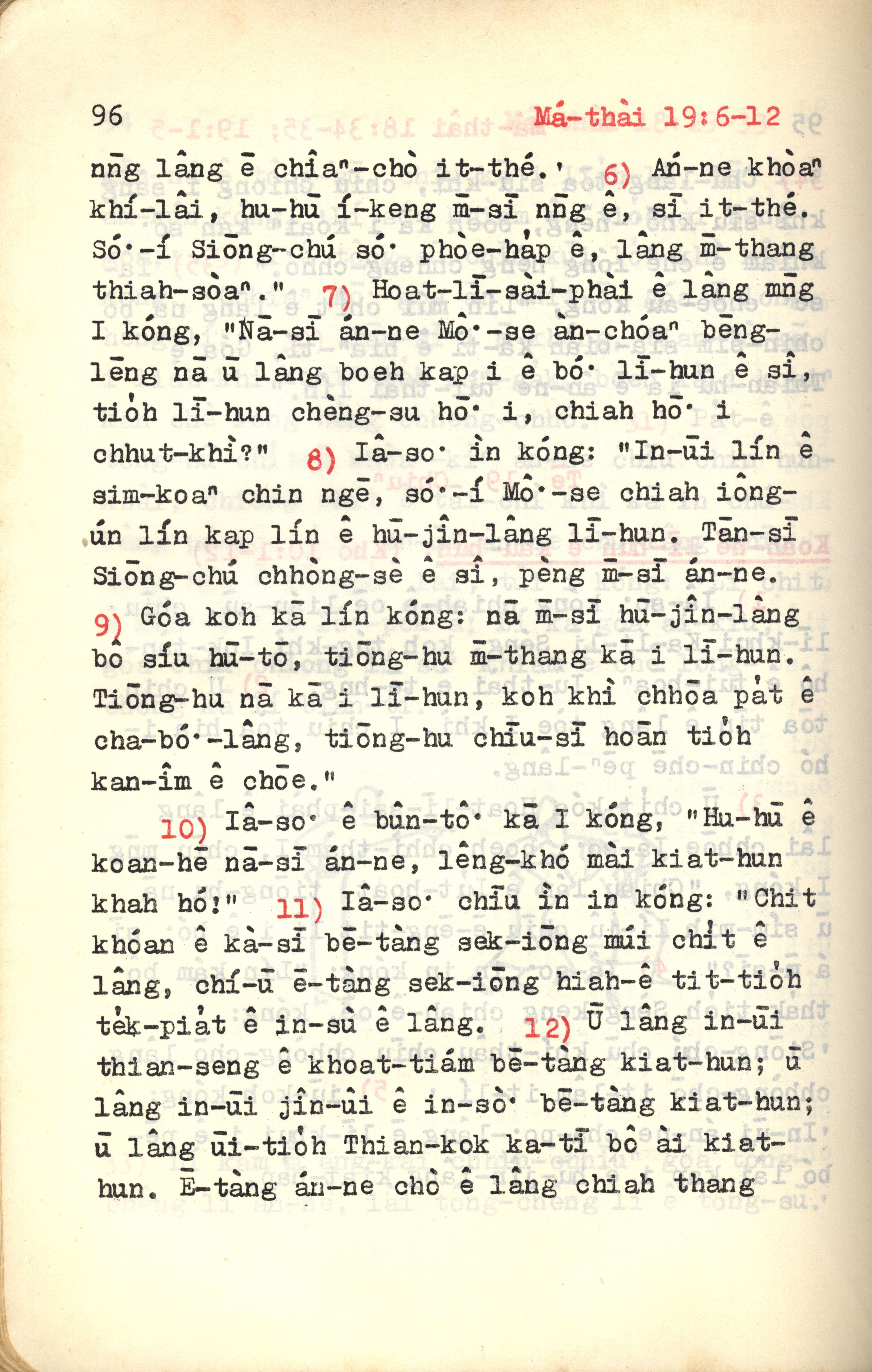 1972年新約紅皮聖經 馬太福音 19 章 6 節到 19 章 12 節