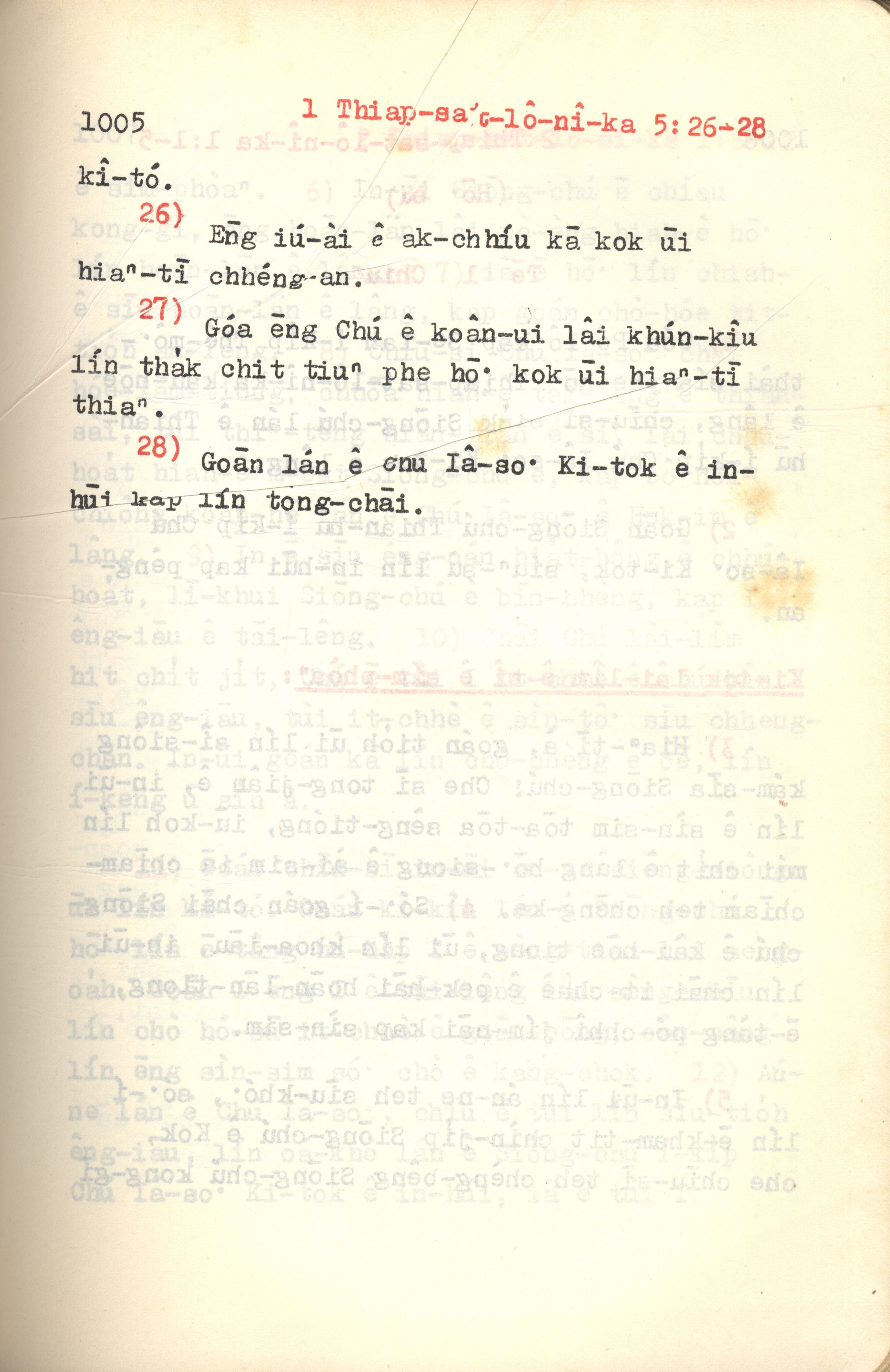 1972年新約紅皮聖經 帖撒羅尼迦前書 5 章 26 節到 5 章 28 節