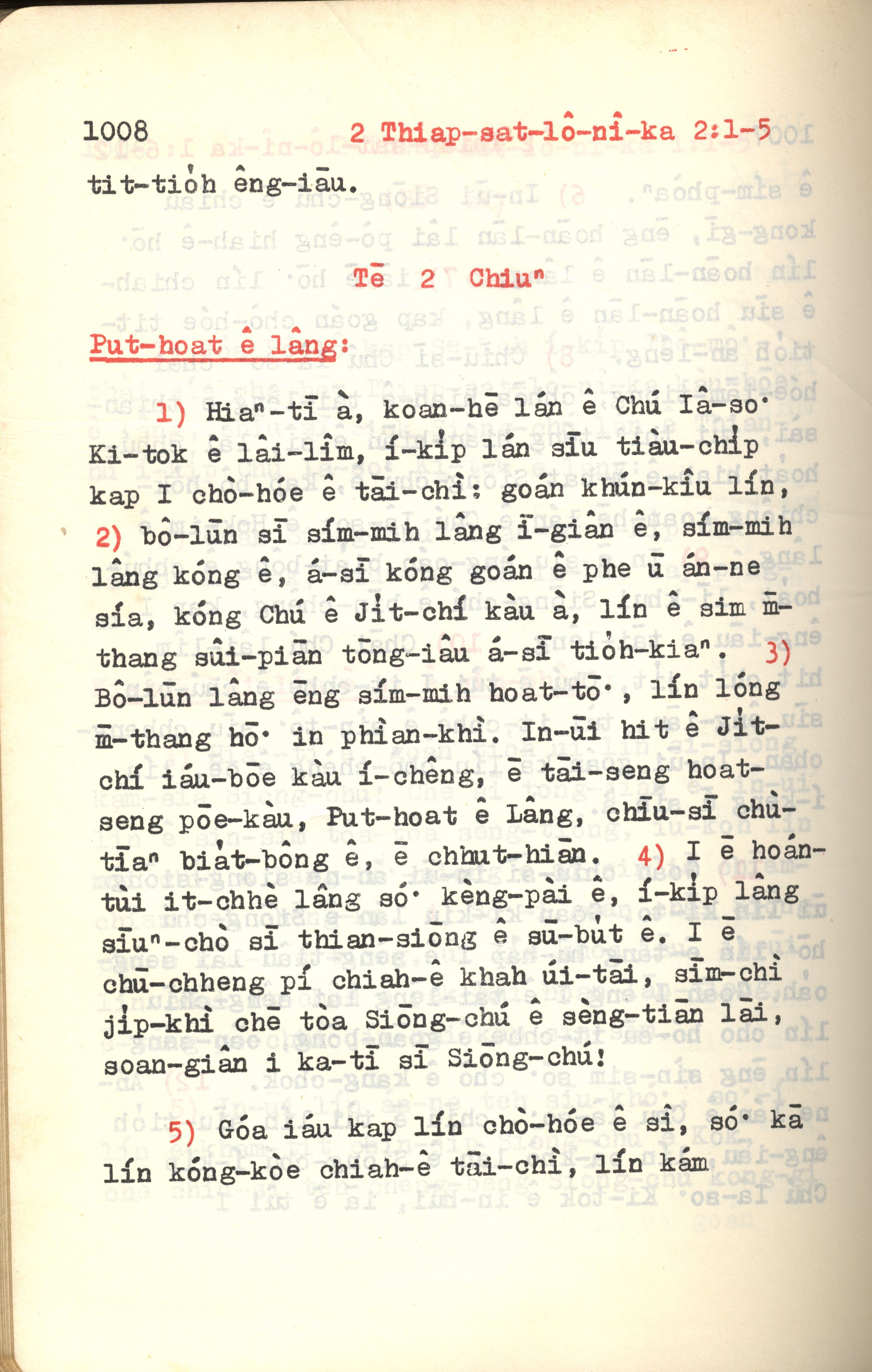 1972年新約紅皮聖經 帖撒羅尼迦後書 2 章 1 節到 2 章 5 節