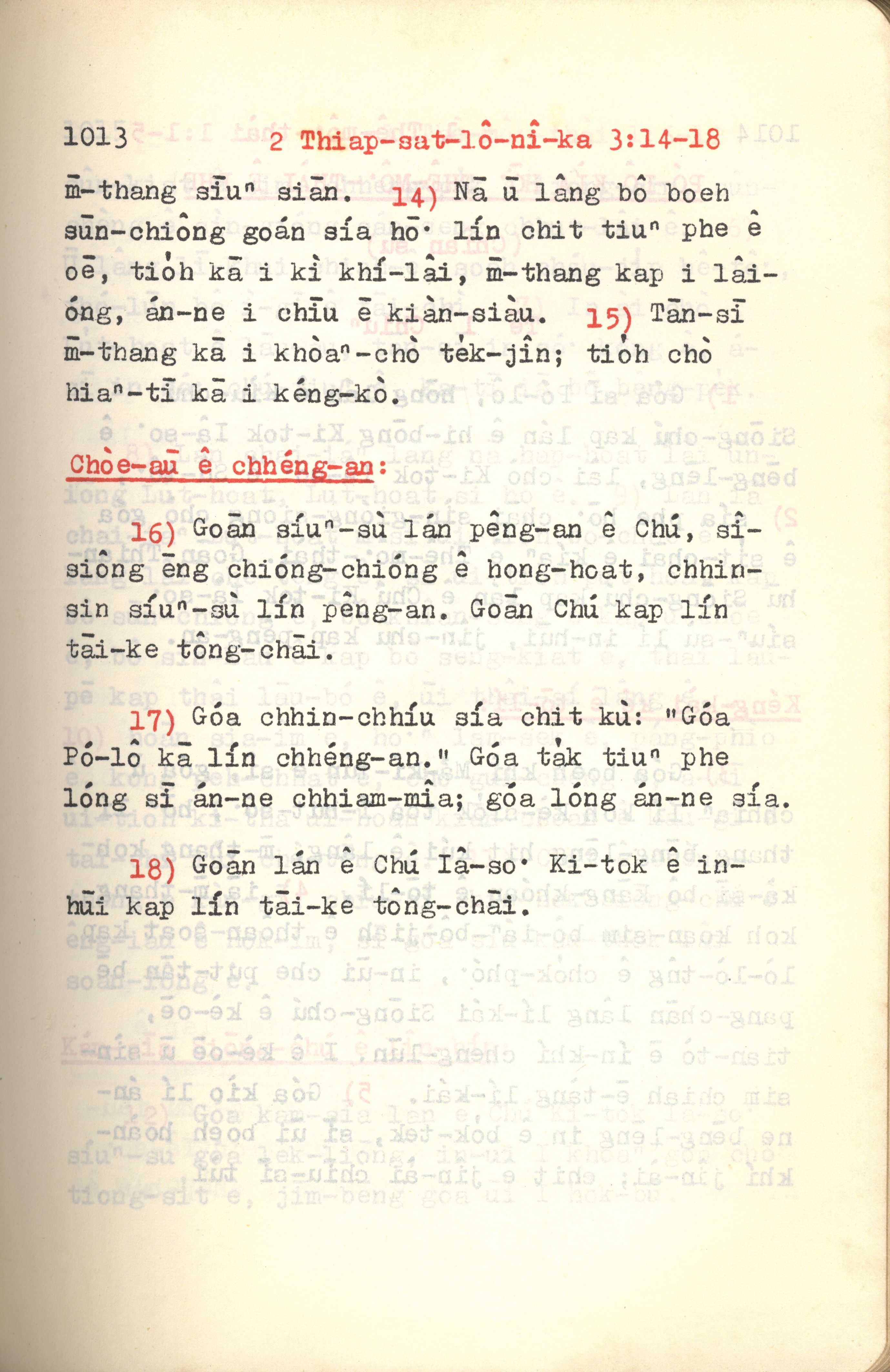 1972年新約紅皮聖經 帖撒羅尼迦後書 3 章 14 節到 3 章 18 節
