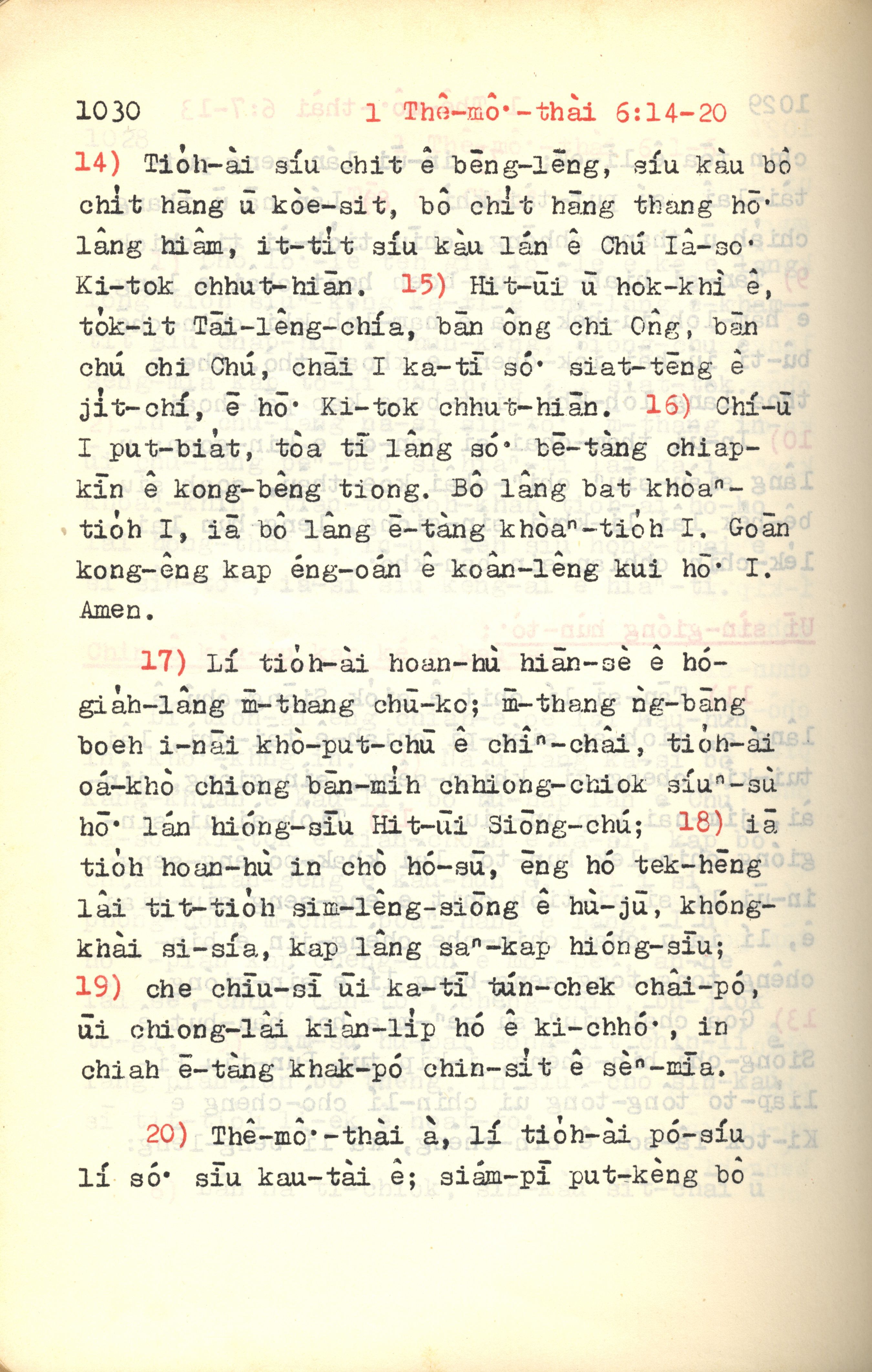 1972年新約紅皮聖經 提摩太前書 6 章 14 節到 6 章 20 節