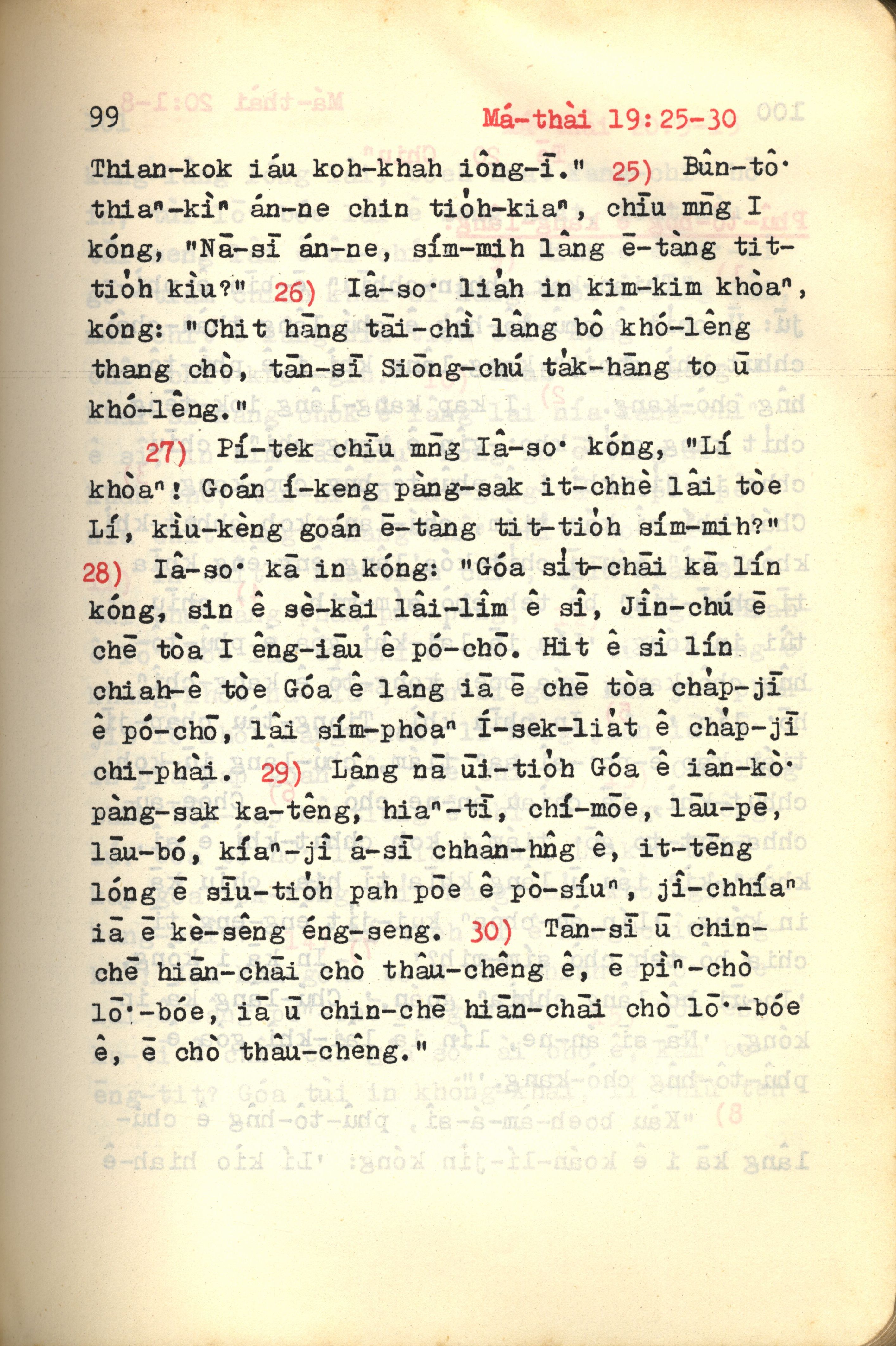 1972年新約紅皮聖經 馬太福音 19 章 25 節到 19 章 30 節