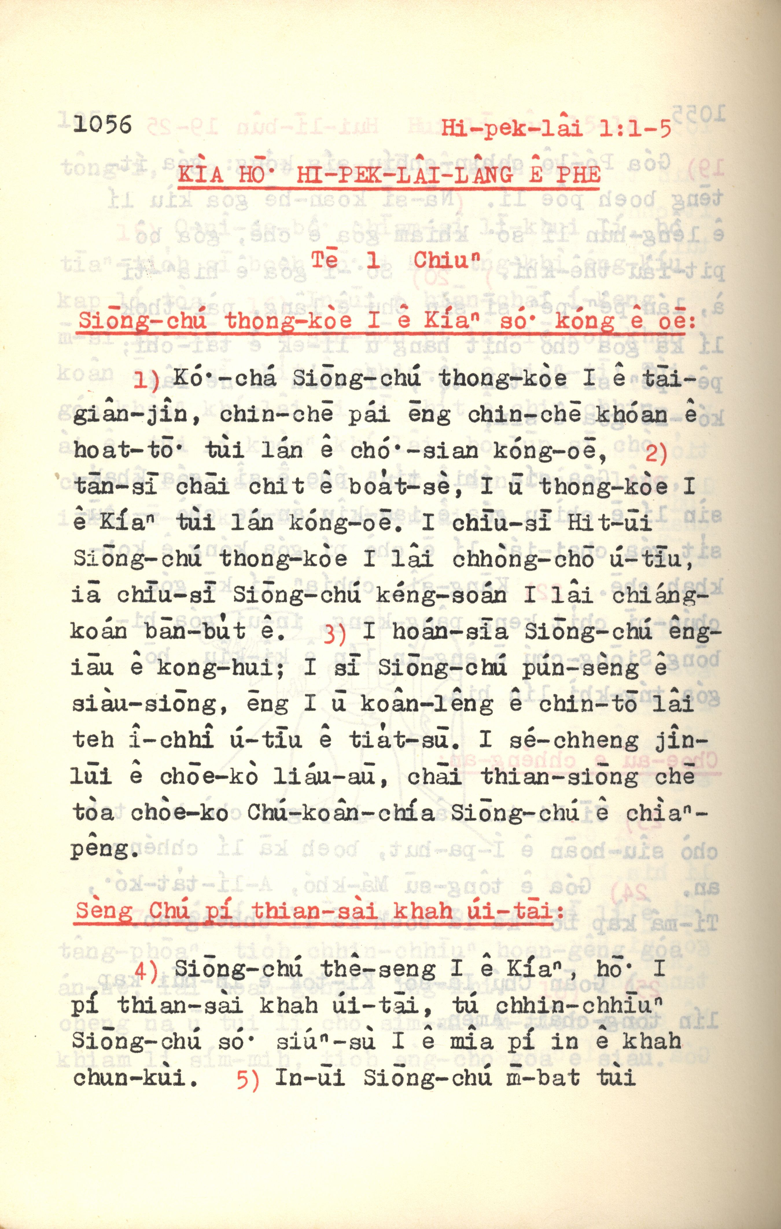 1972年新約紅皮聖經 希伯來書 1 章 1 節到 1 章 5 節