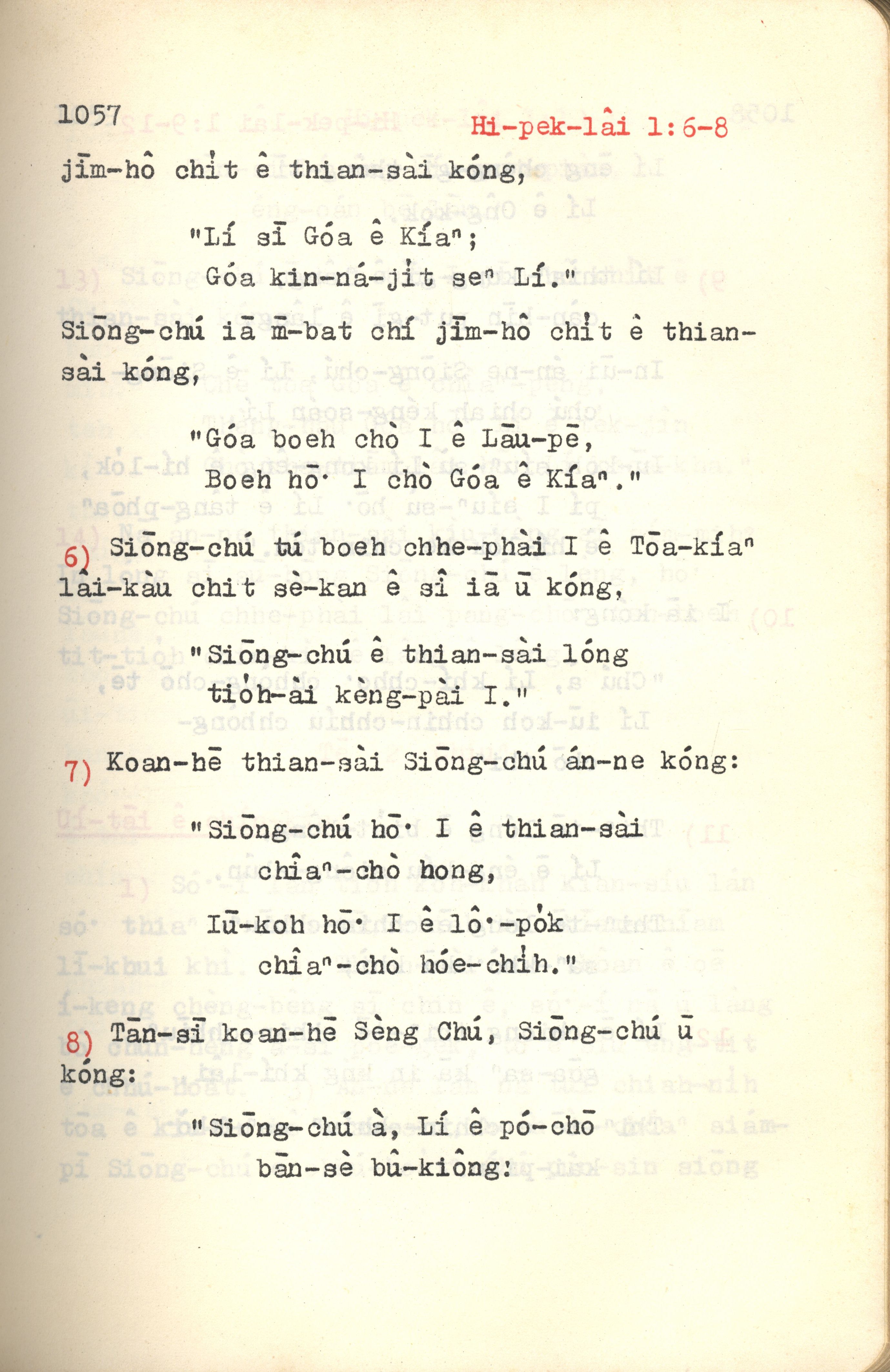 1972年新約紅皮聖經 希伯來書 1 章 6 節到 1 章 8 節