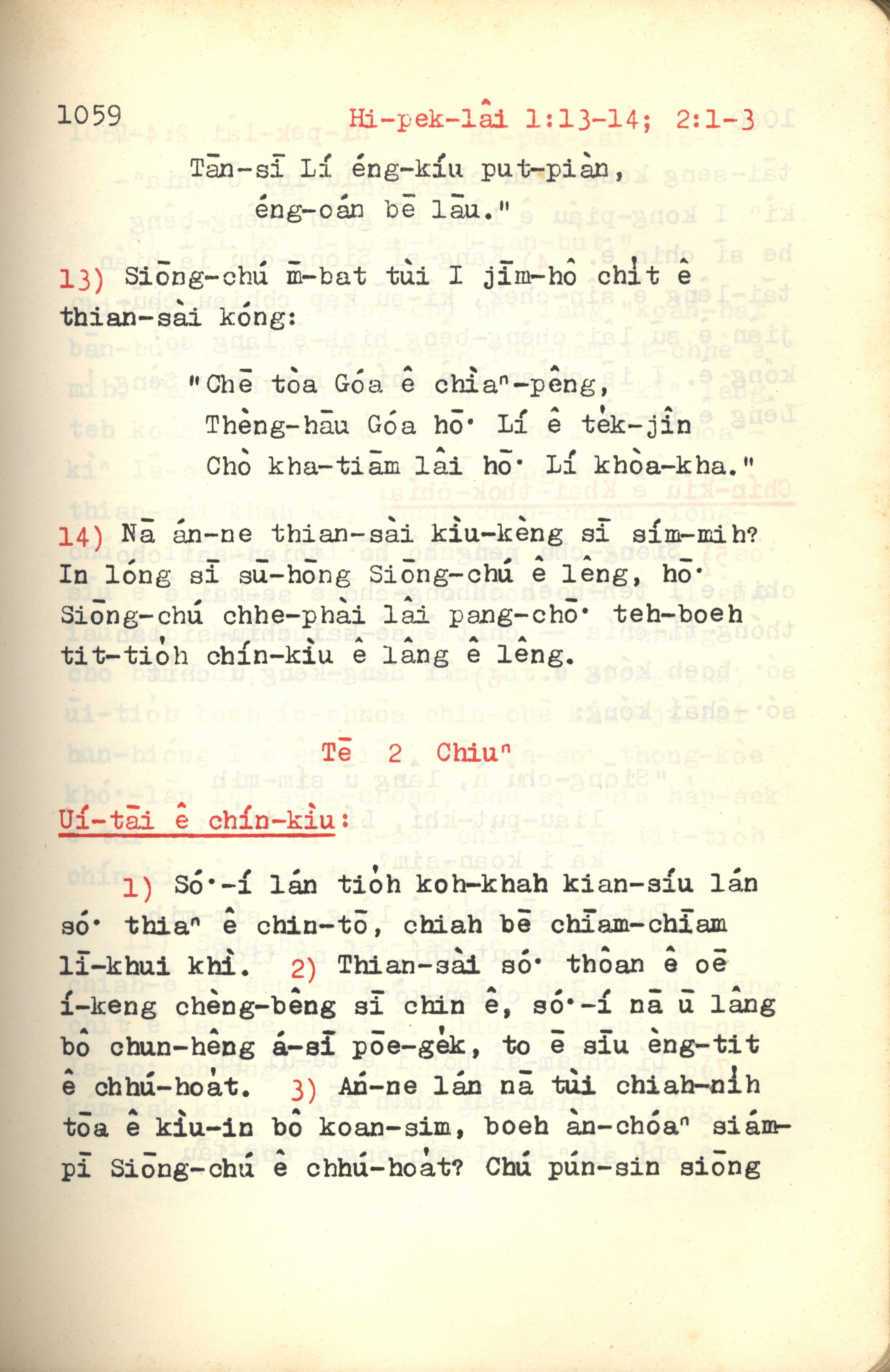 1972年新約紅皮聖經 希伯來書 1 章 13 節到 2 章 3 節