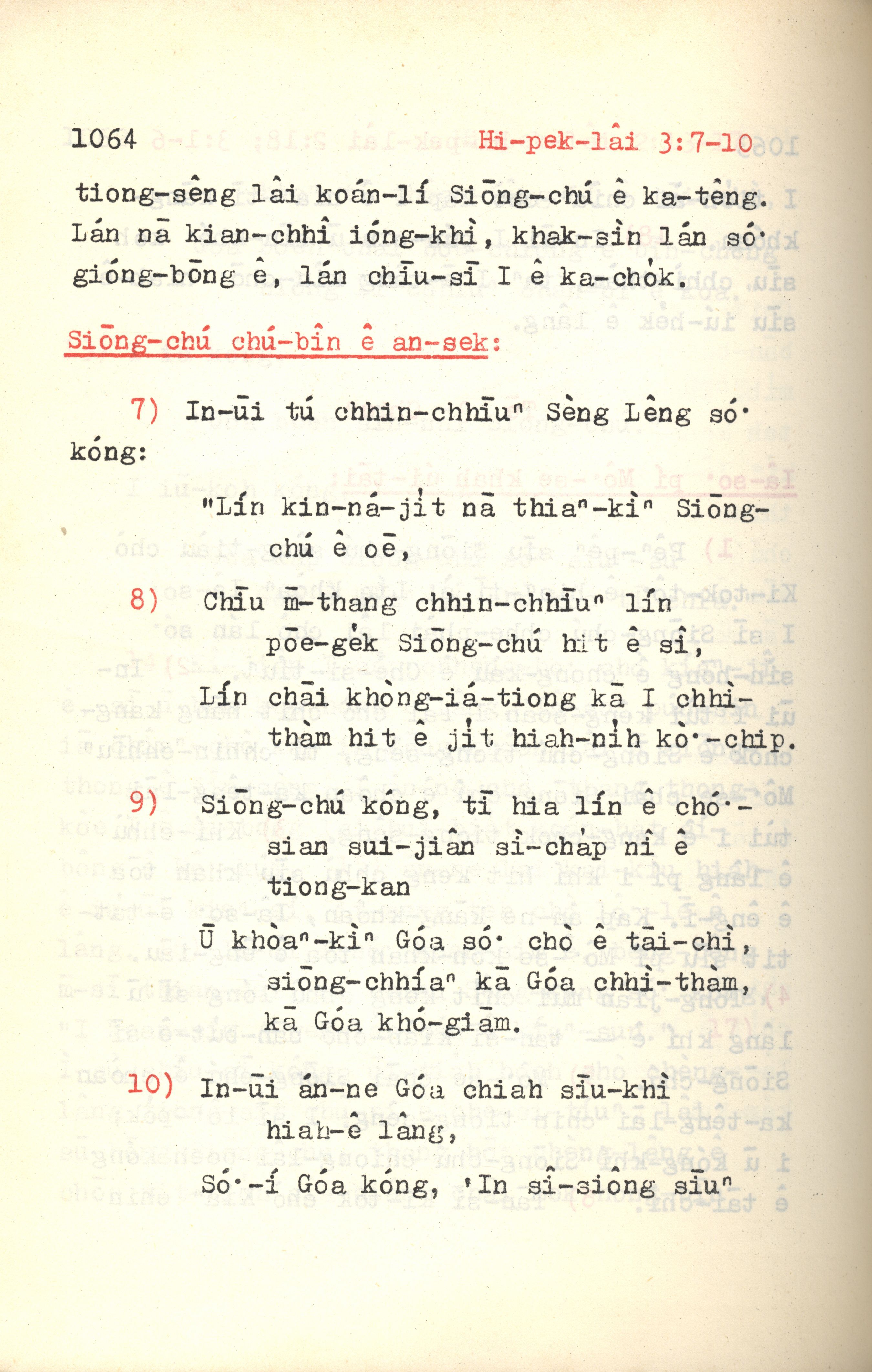 1972年新約紅皮聖經 希伯來書 3 章 7 節到 3 章 10 節