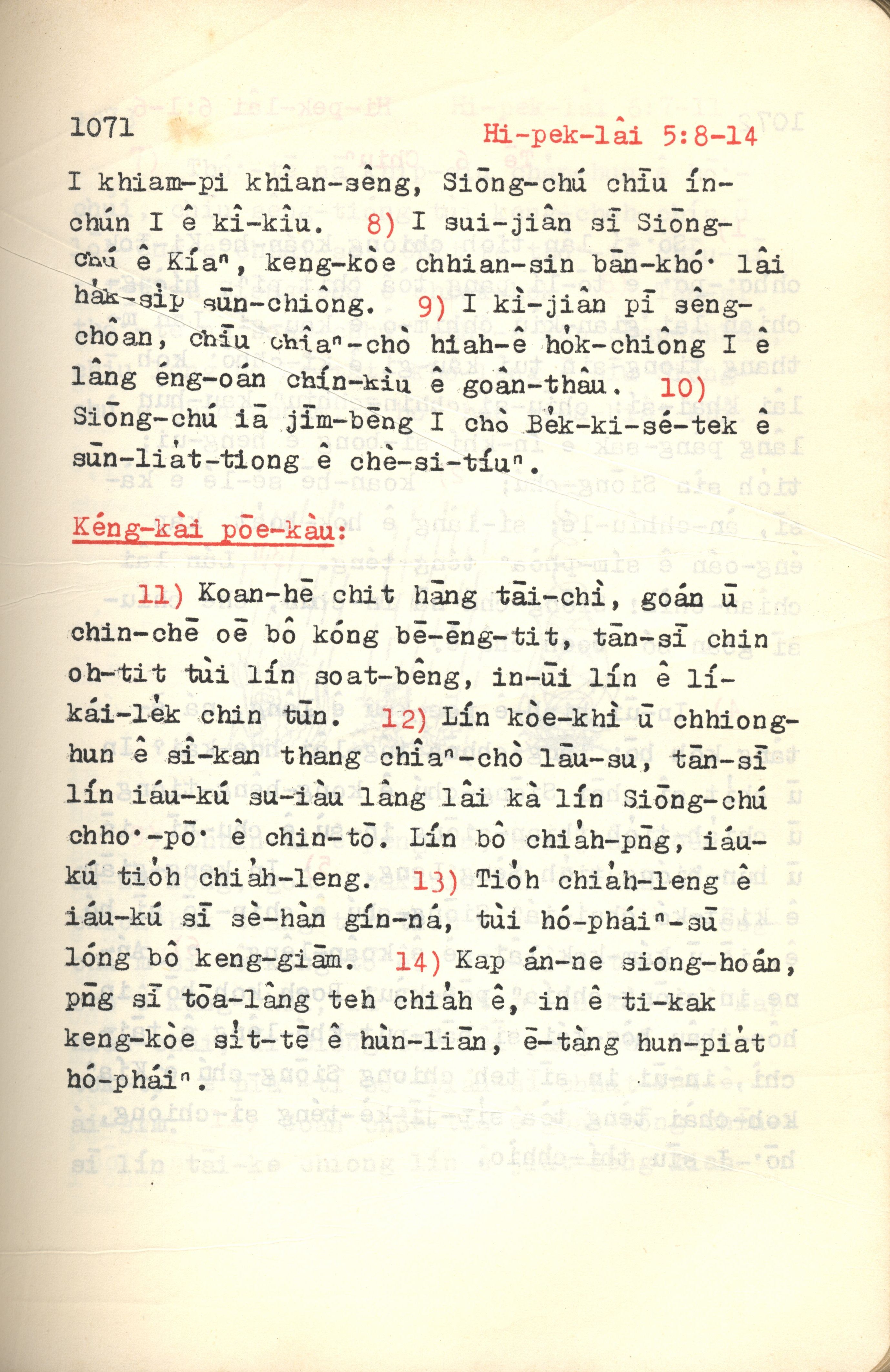 1972年新約紅皮聖經 希伯來書 5 章 8 節到 5 章 14 節