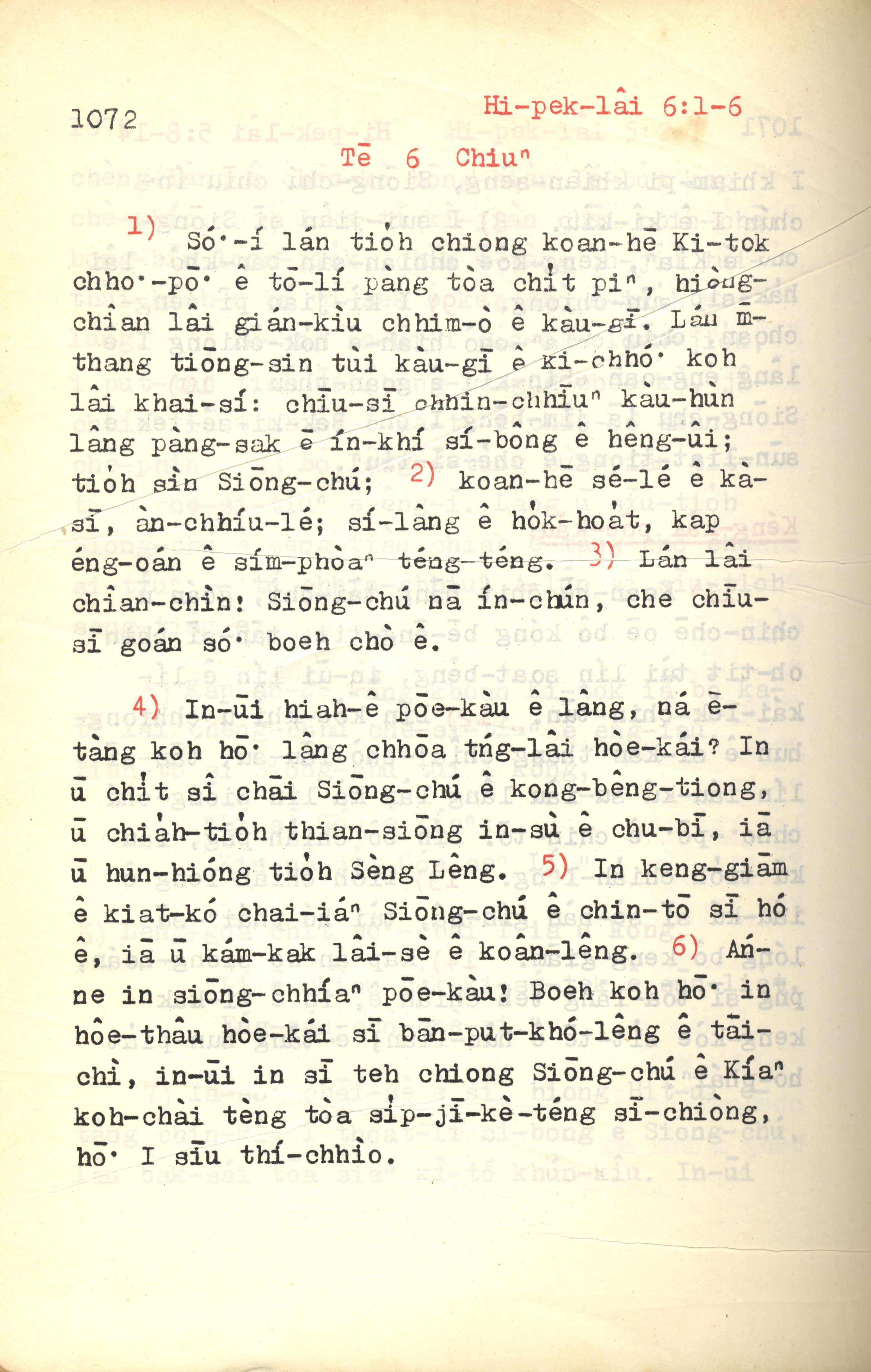 1972年新約紅皮聖經 希伯來書 6 章 1 節到 6 章 6 節