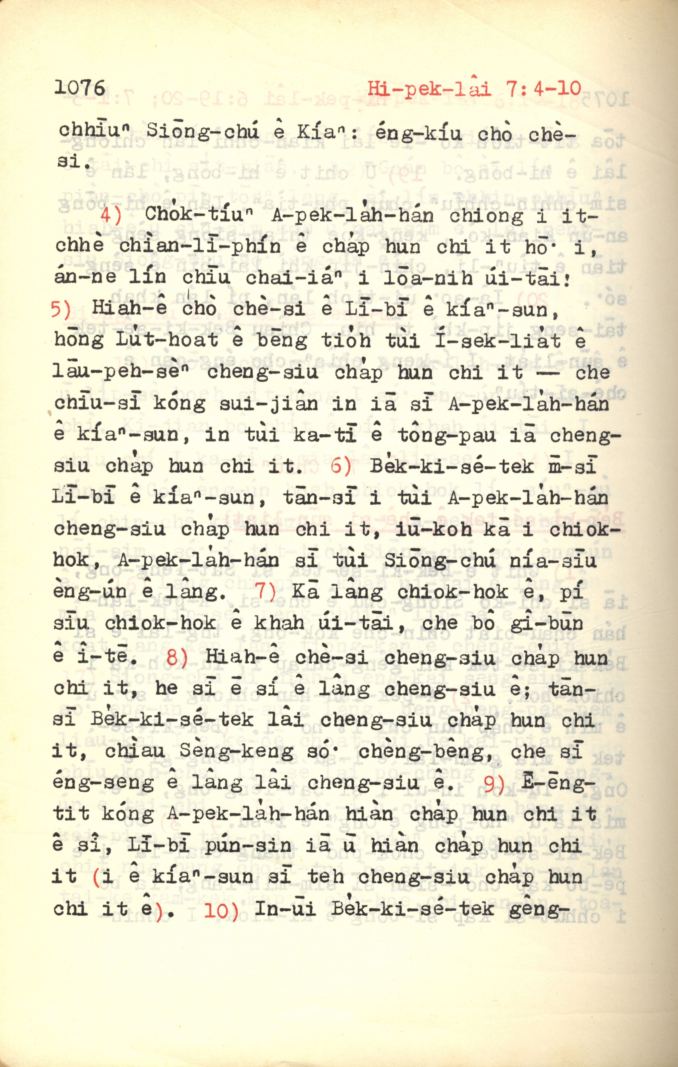 1972年新約紅皮聖經 希伯來書 7 章 4 節到 7 章 10 節