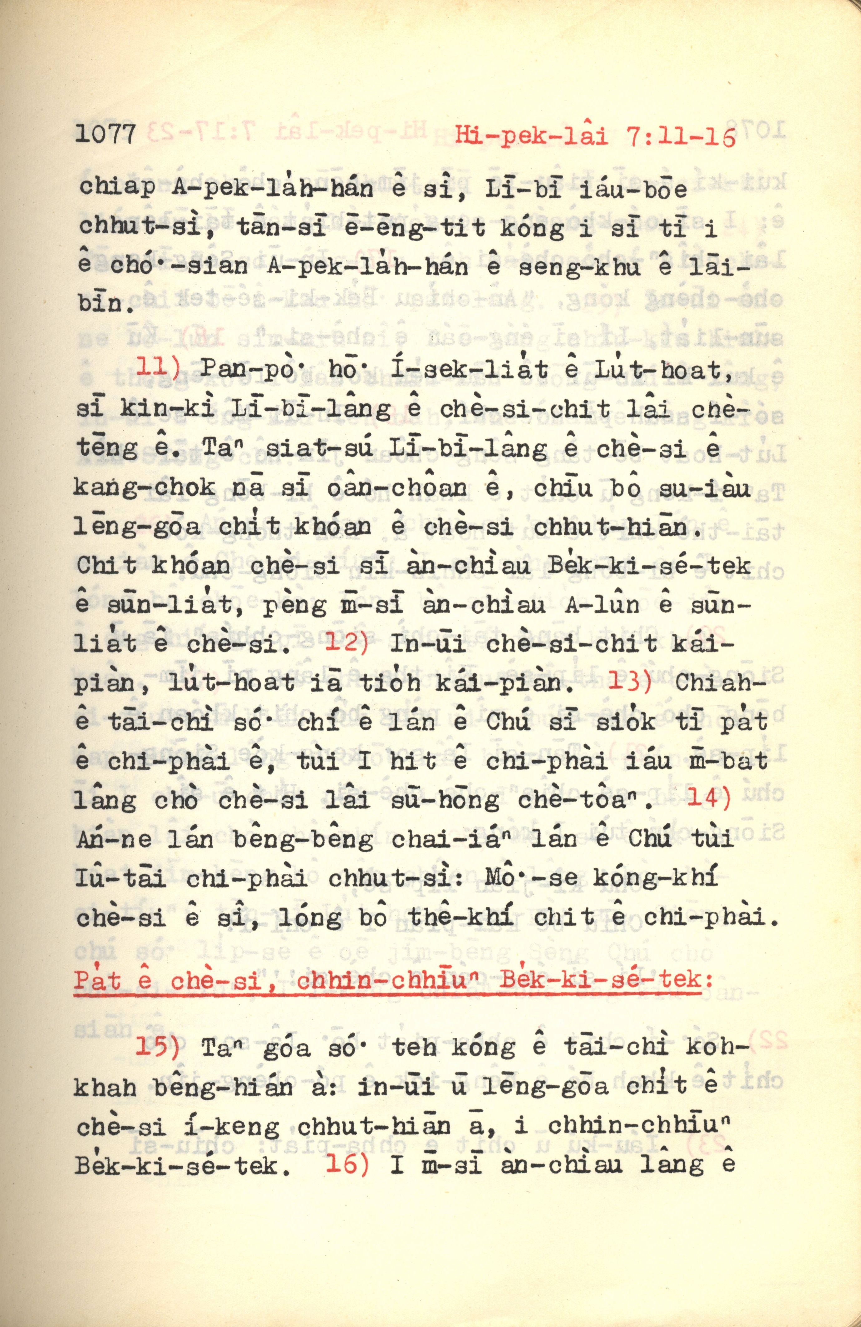 1972年新約紅皮聖經 希伯來書 7 章 11 節到 7 章 16 節