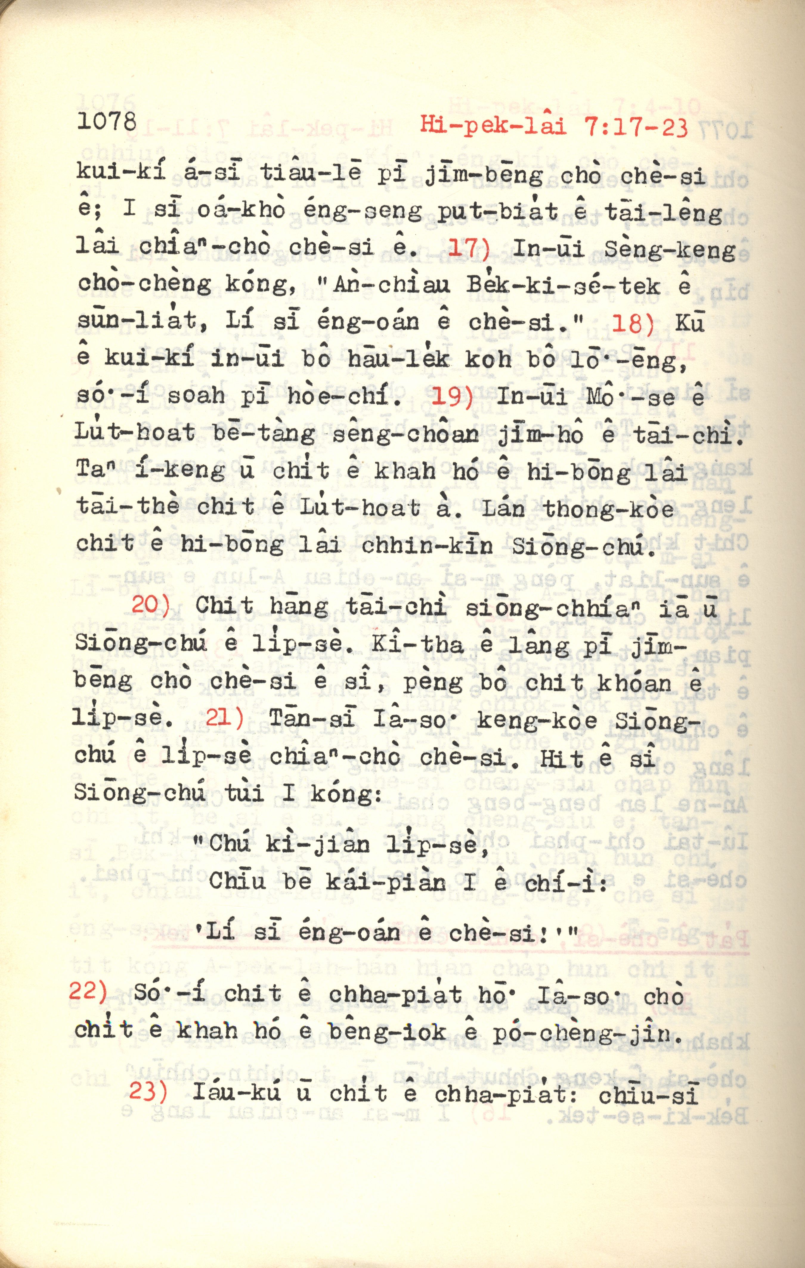 1972年新約紅皮聖經 希伯來書 7 章 17 節到 7 章 23 節