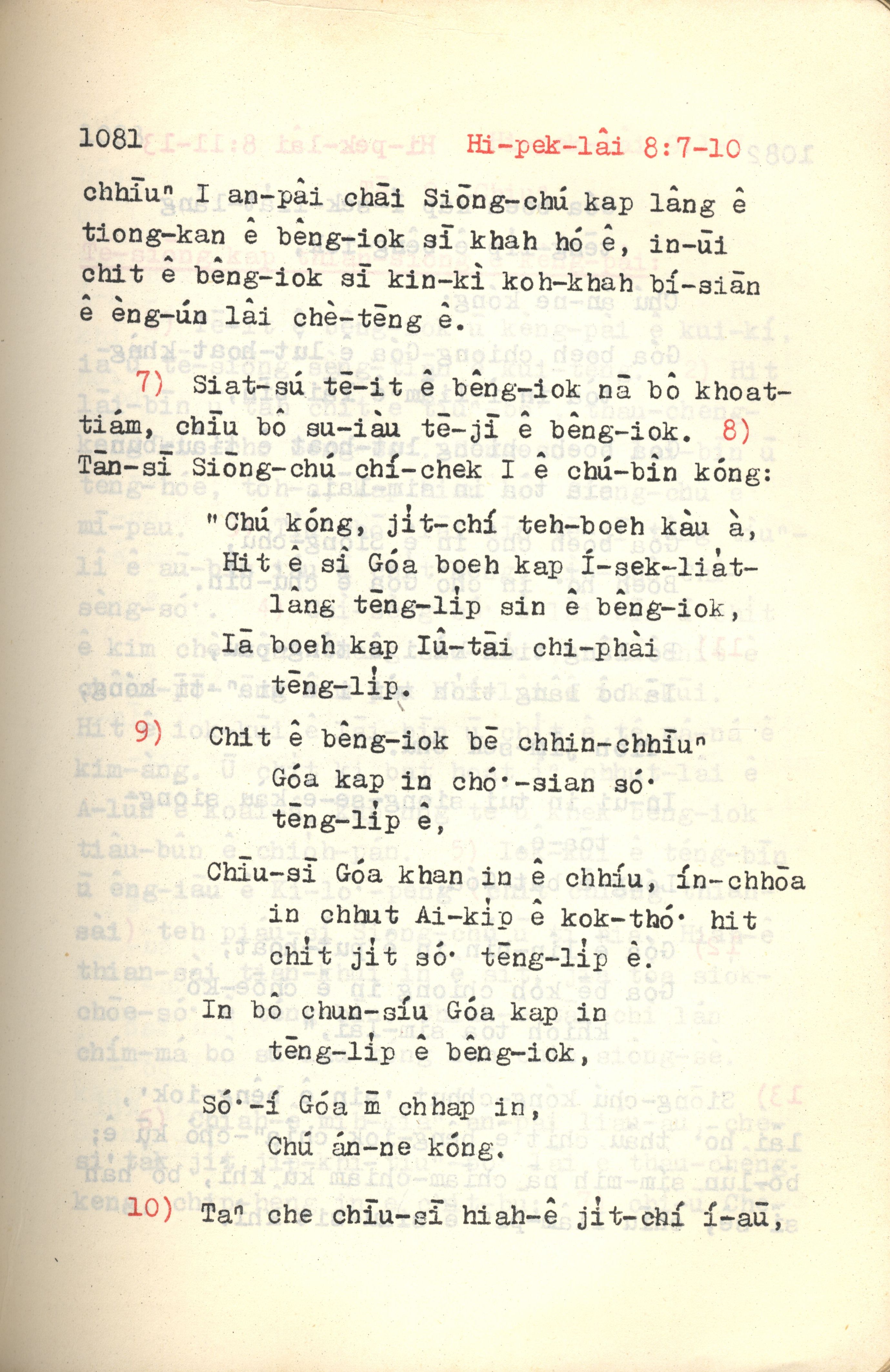 1972年新約紅皮聖經 希伯來書 8 章 7 節到 8 章 10 節
