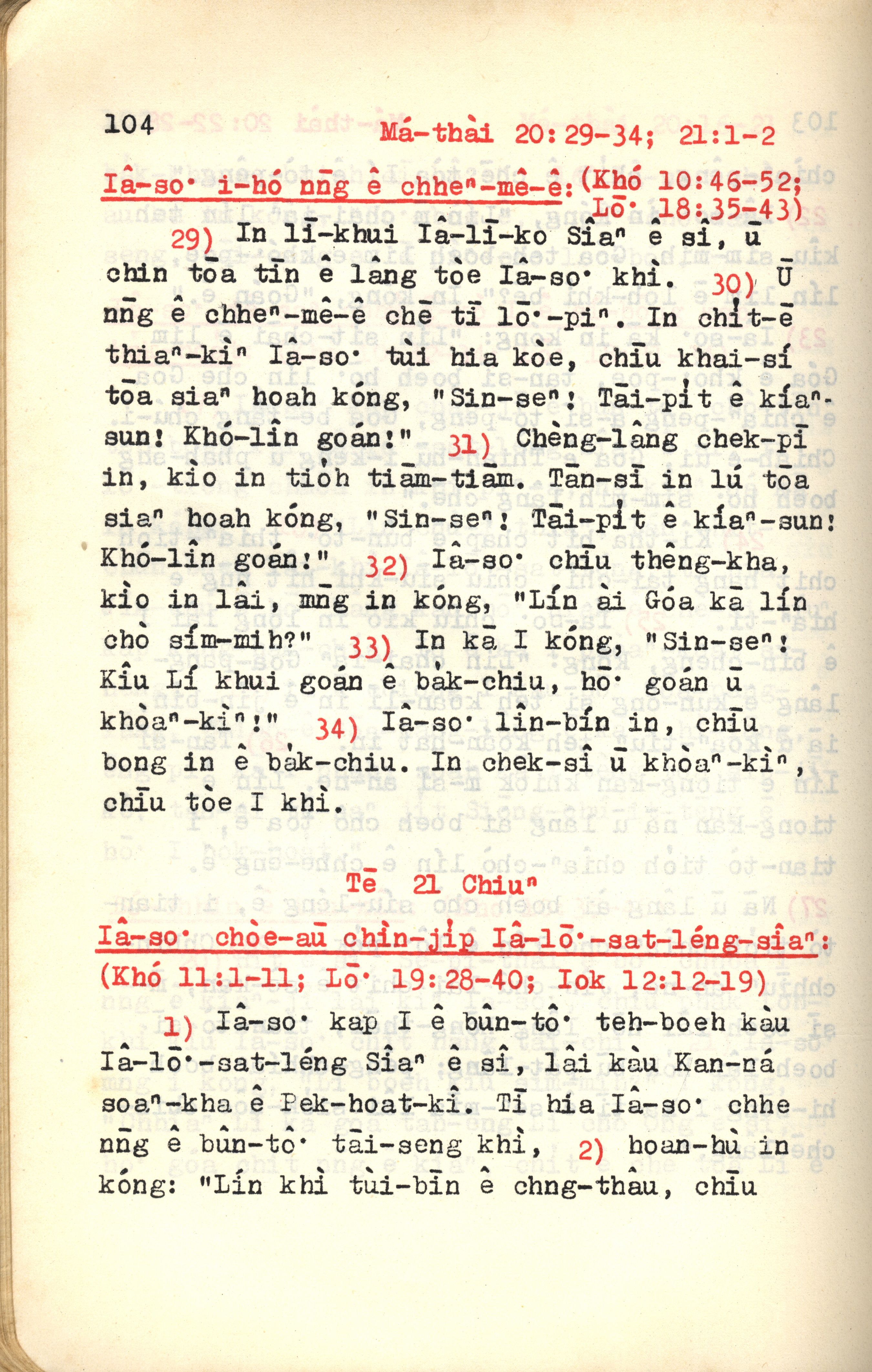 1972年新約紅皮聖經 馬太福音 20 章 29 節到 21 章 2 節
