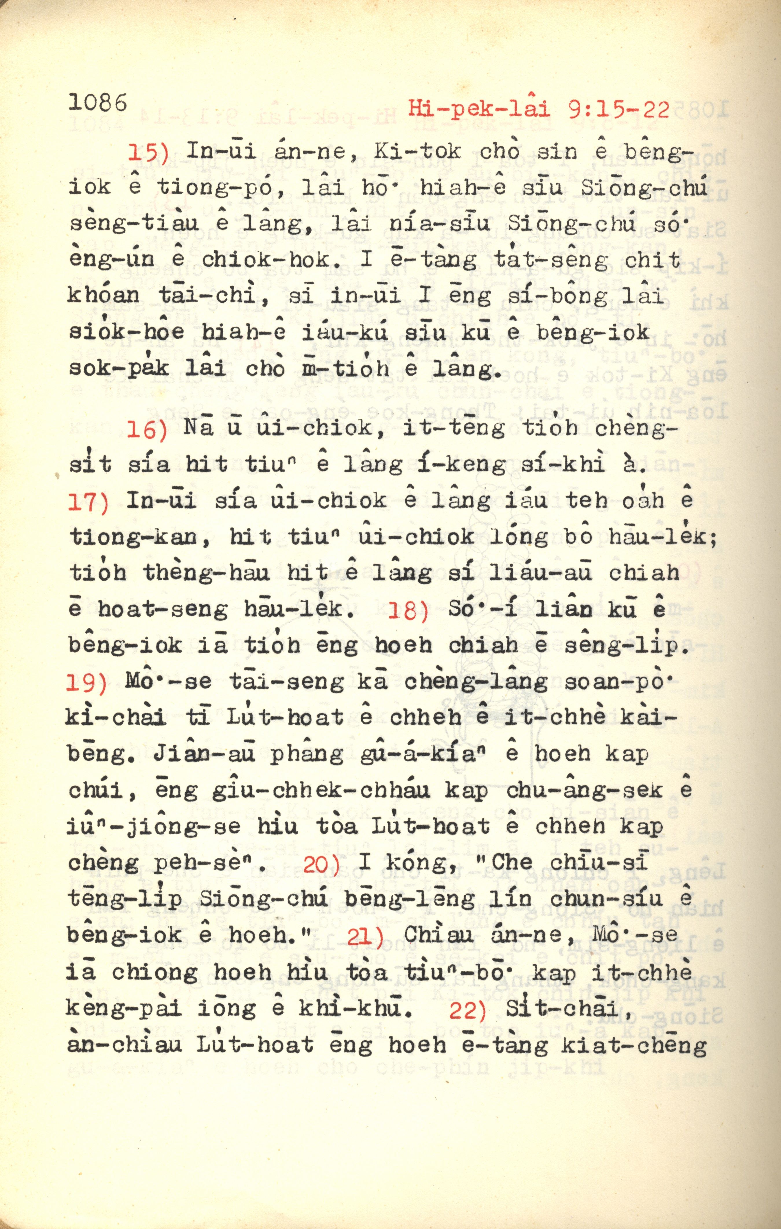 1972年新約紅皮聖經 希伯來書 9 章 15 節到 9 章 22 節