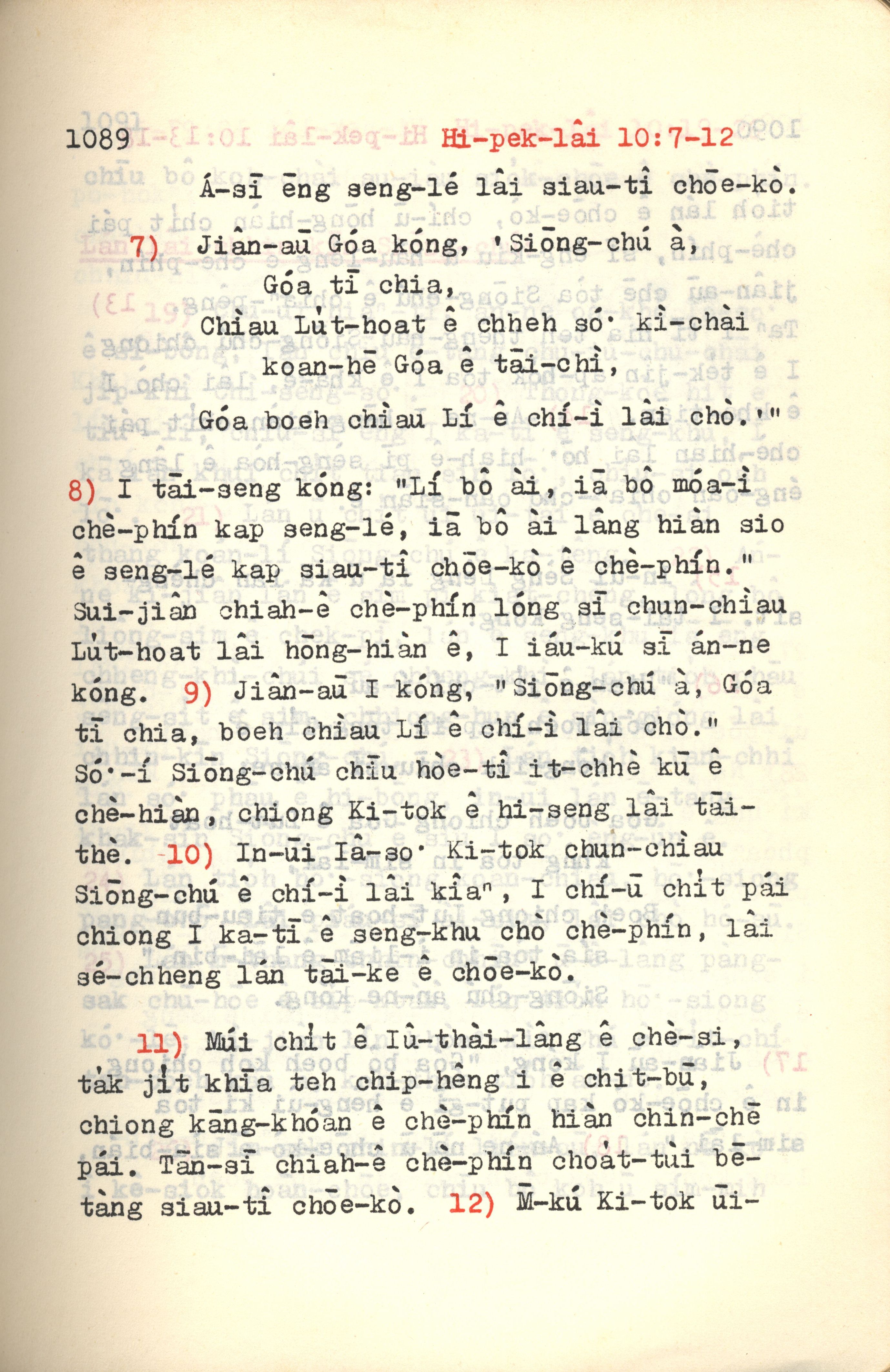 1972年新約紅皮聖經 希伯來書 10 章 7 節到 10 章 12 節