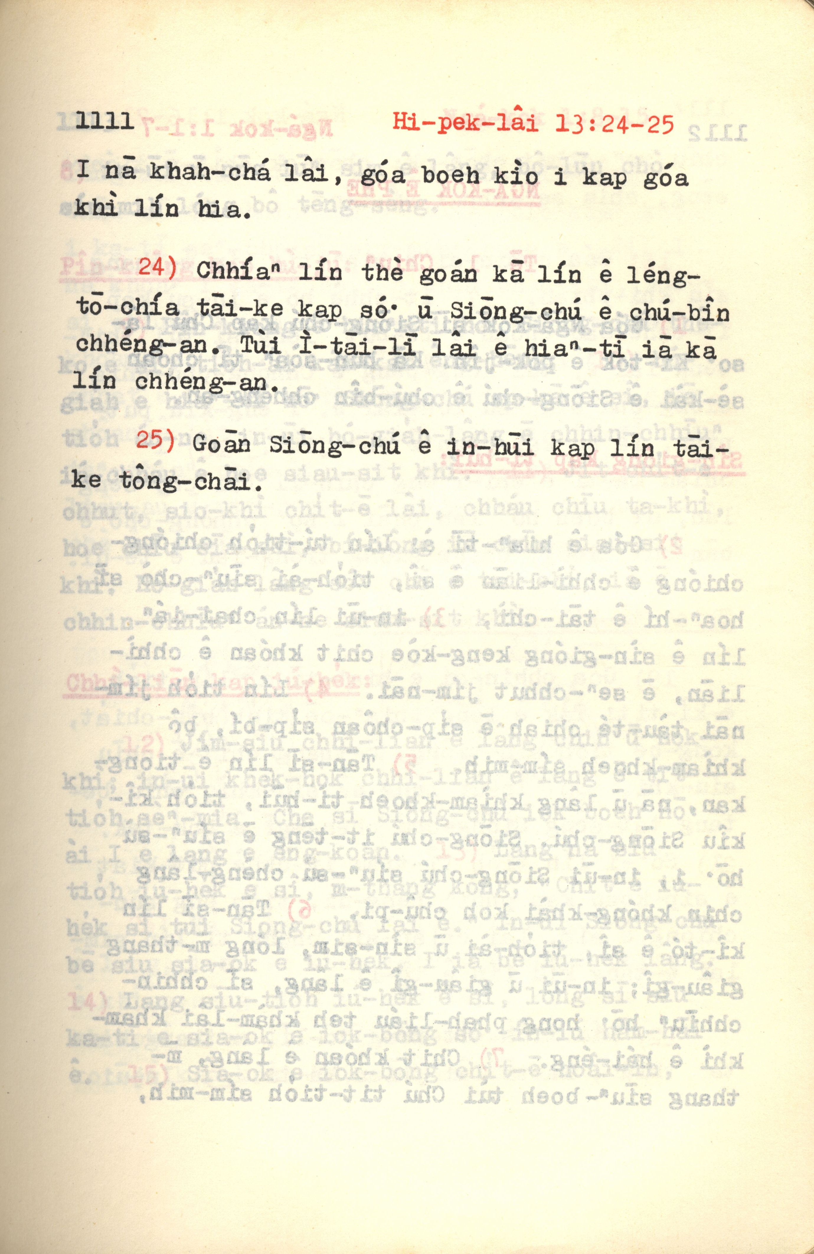 1972年新約紅皮聖經 希伯來書 13 章 24 節到 13 章 25 節