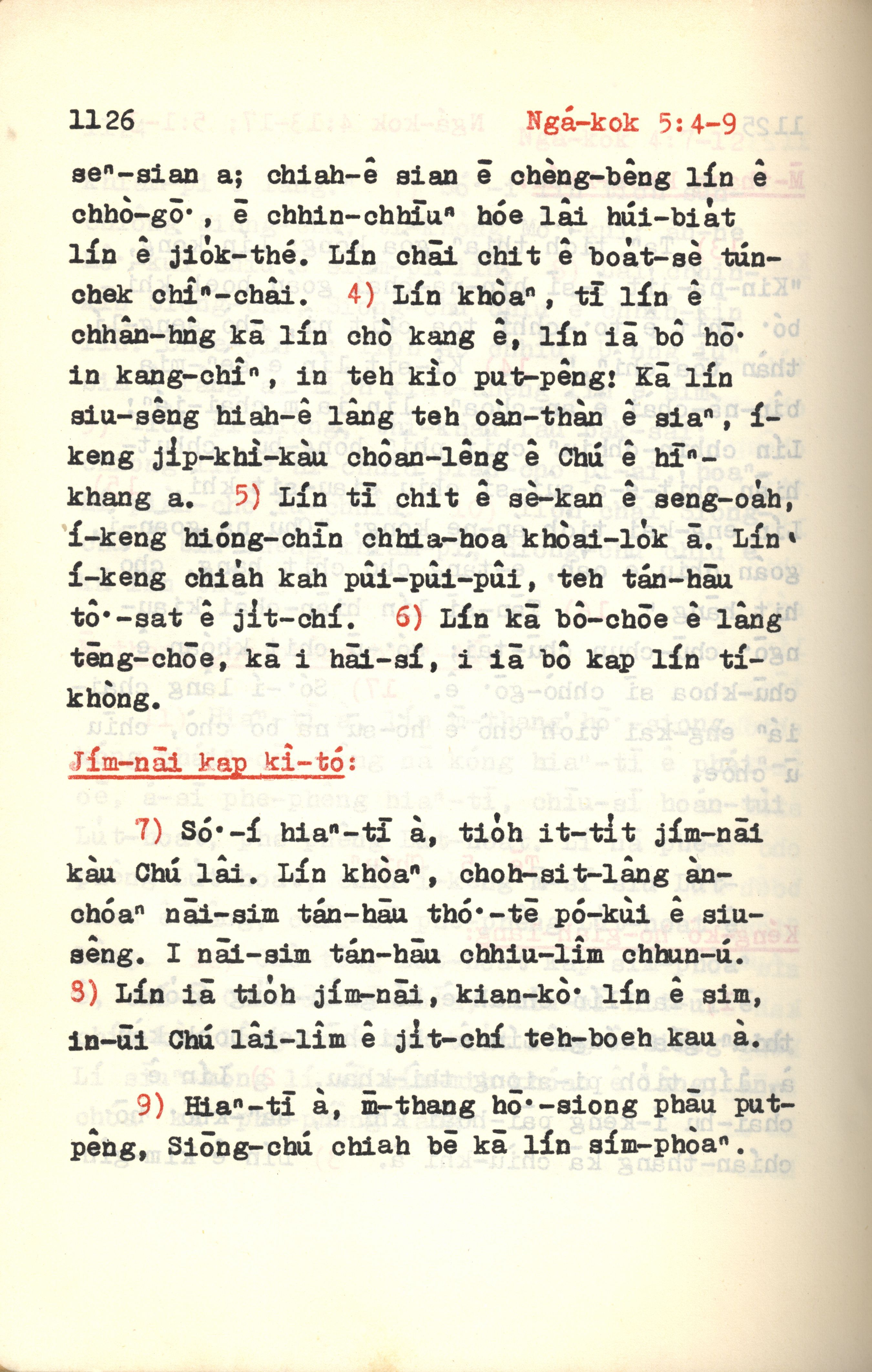 1972年新約紅皮聖經 雅各書 5 章 4 節到 5 章 9 節