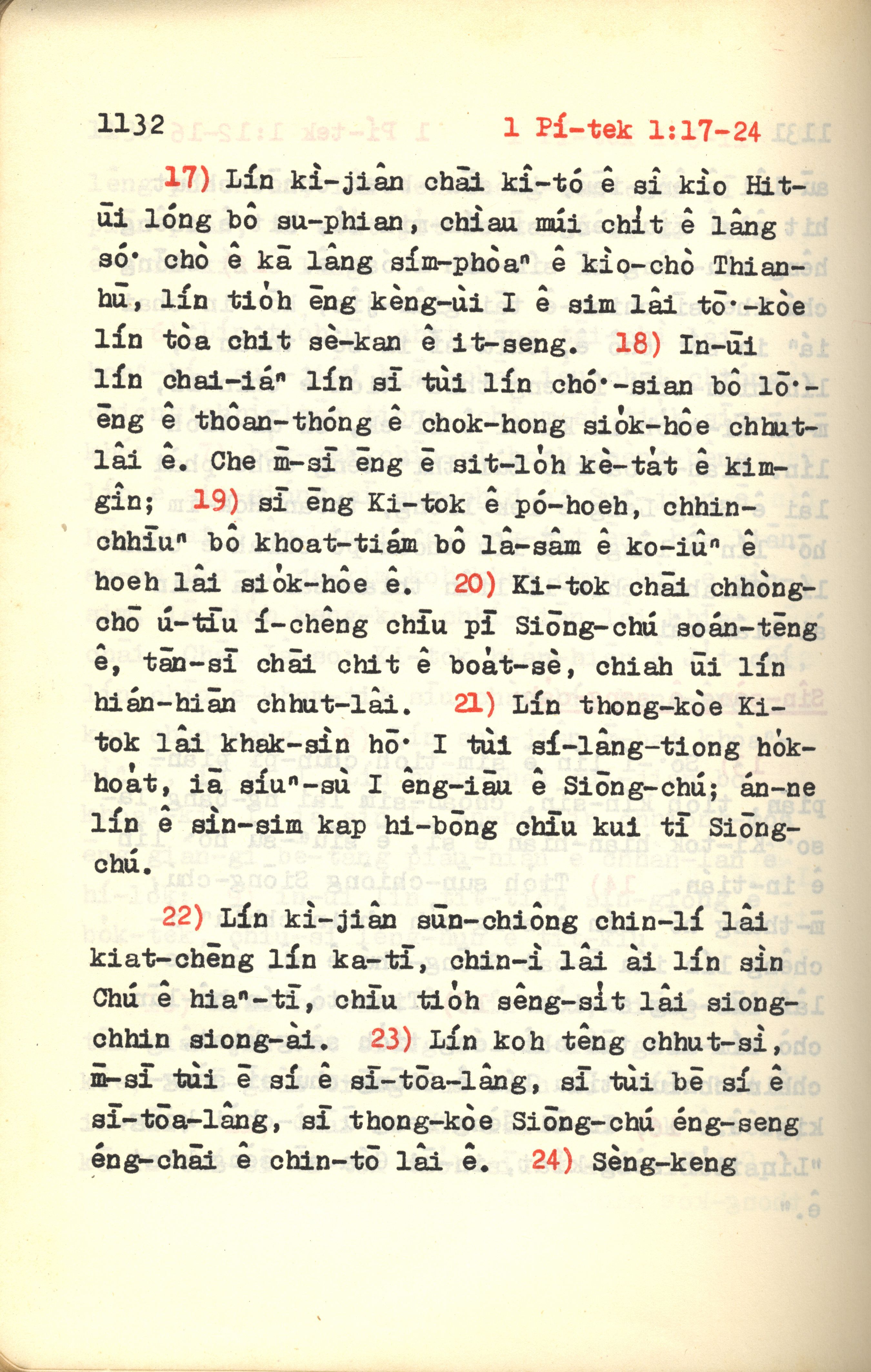1972年新約紅皮聖經 彼得前書 1 章 17 節到 1 章 24 節