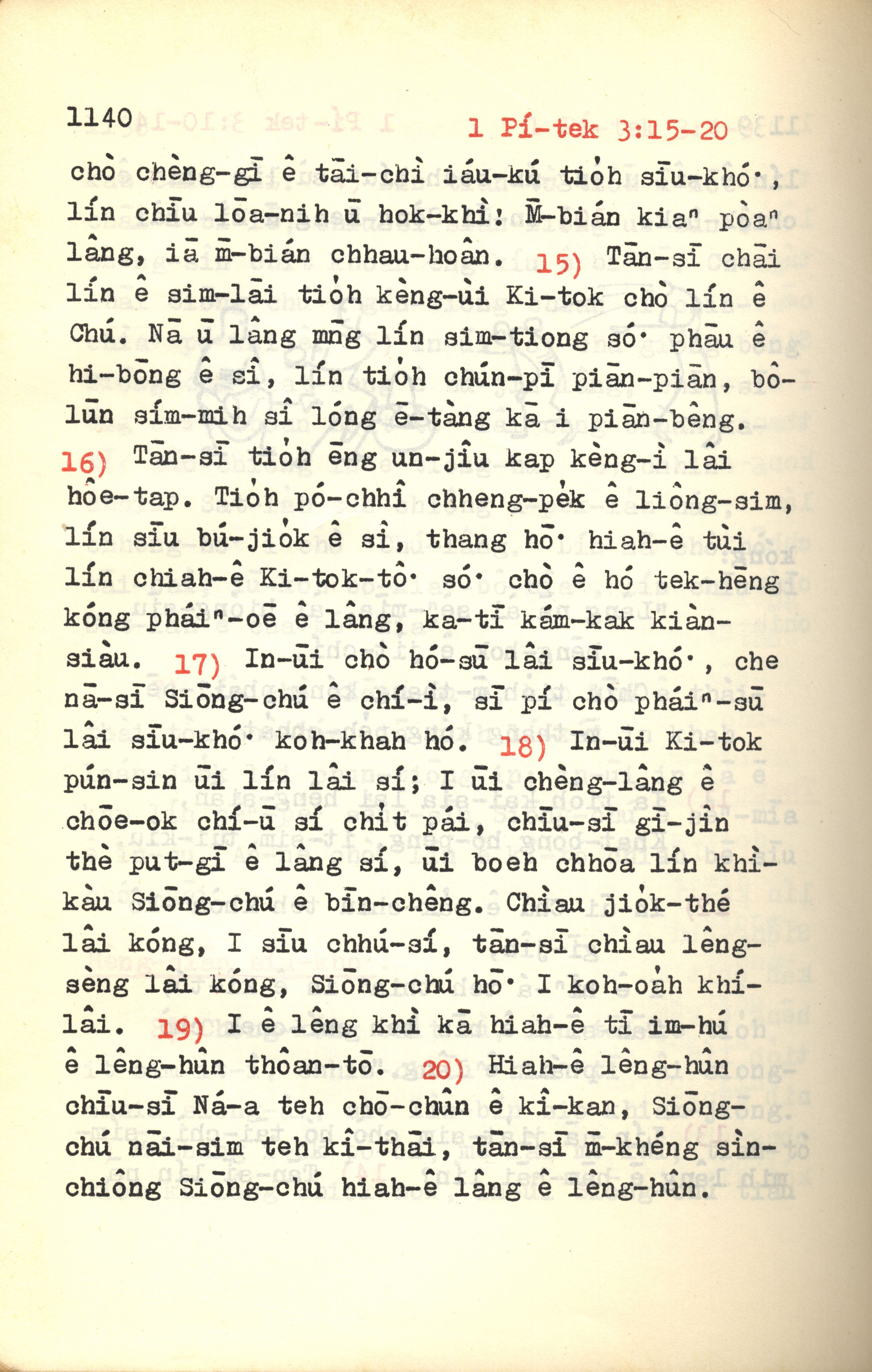 1972年新約紅皮聖經 彼得前書 3 章 15 節到 3 章 20 節