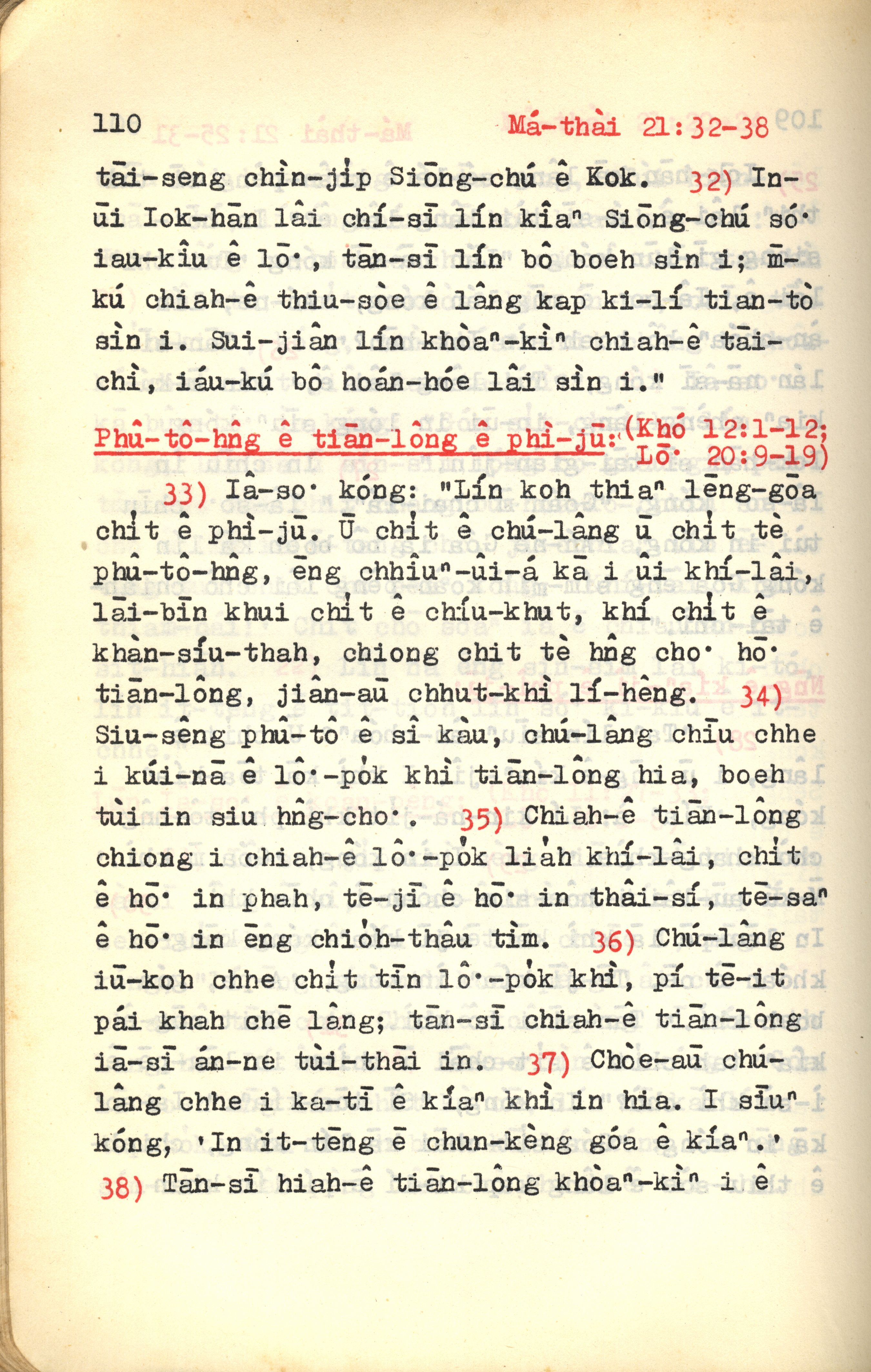 1972年新約紅皮聖經 馬太福音 21 章 32 節到 21 章 38 節