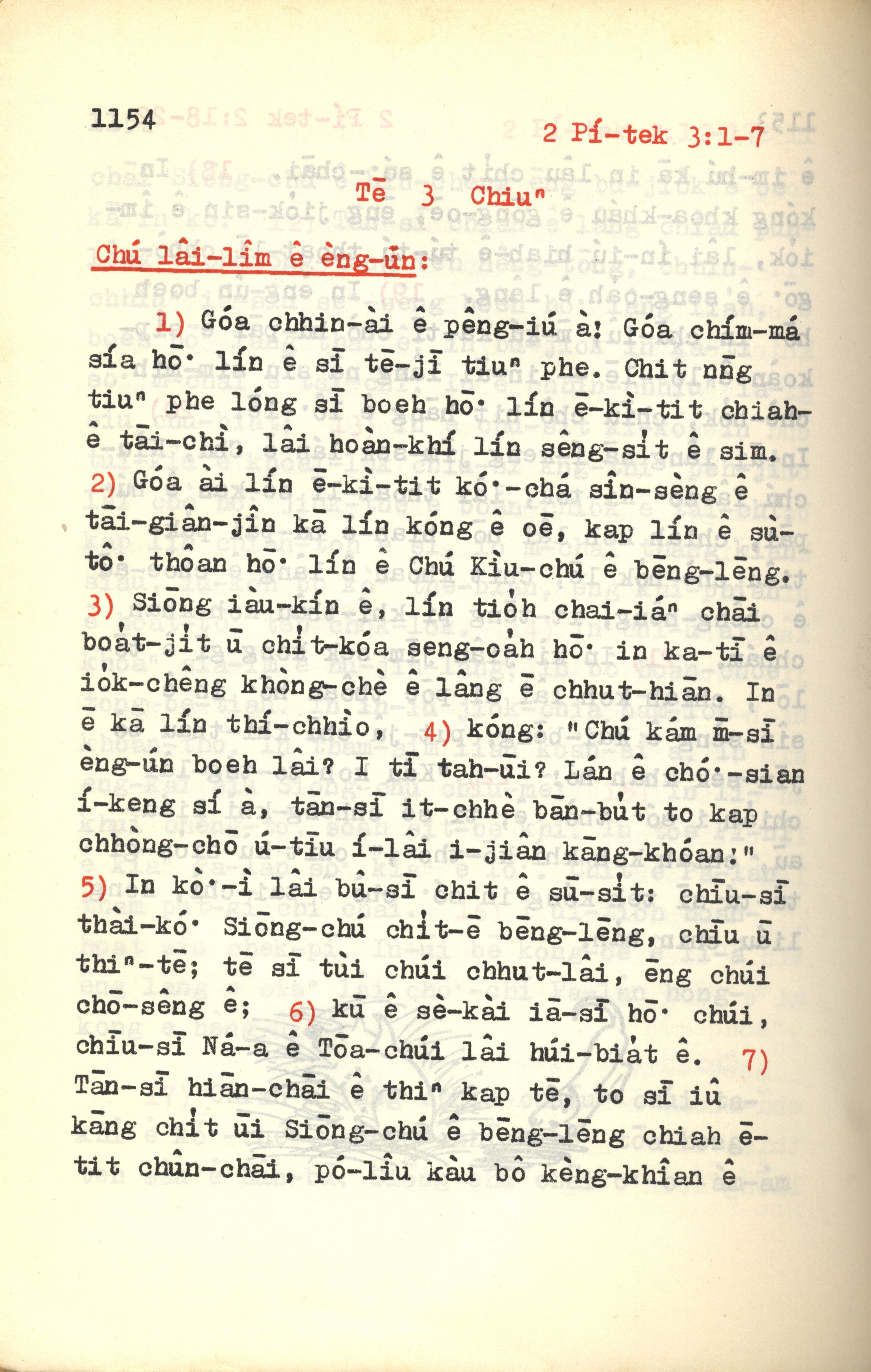 1972年新約紅皮聖經 彼得後書 3 章 1 節到 3 章 7 節