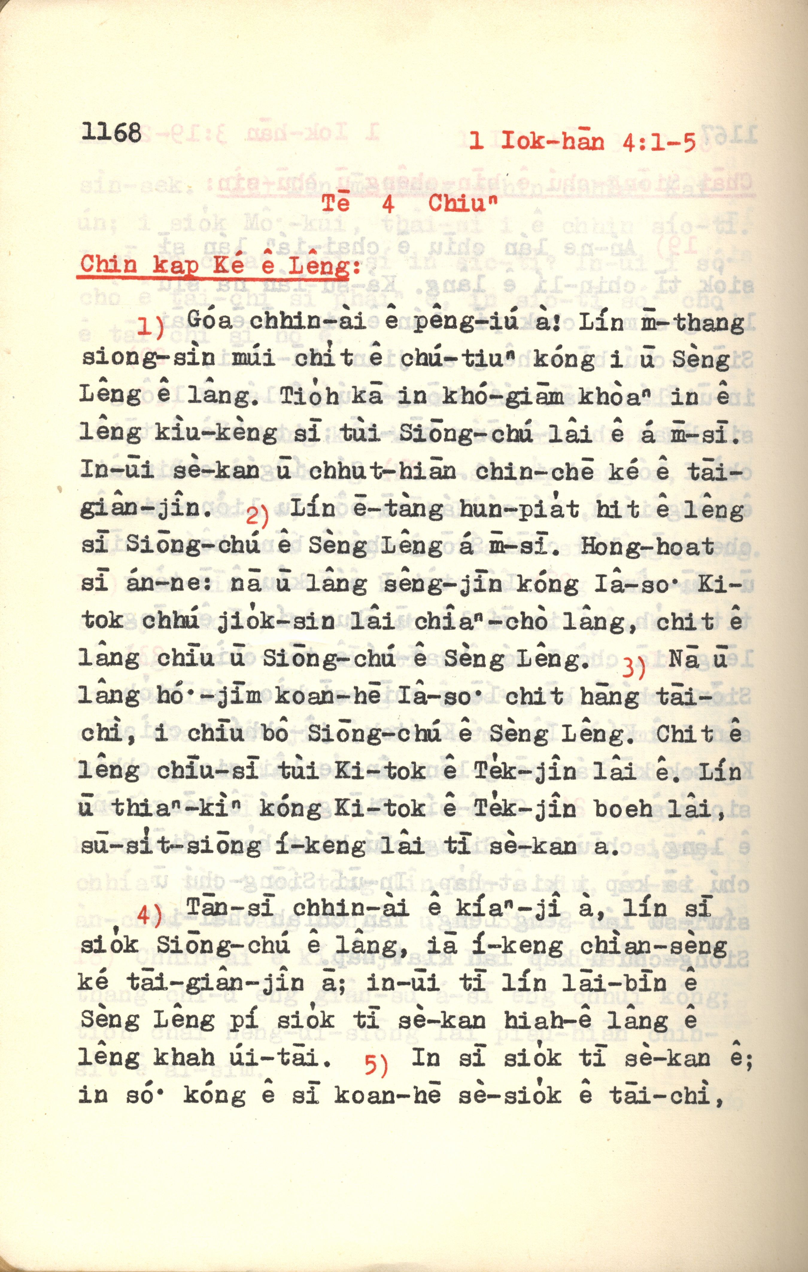 1972年新約紅皮聖經 約翰一書 4 章 1 節到 4 章 5 節