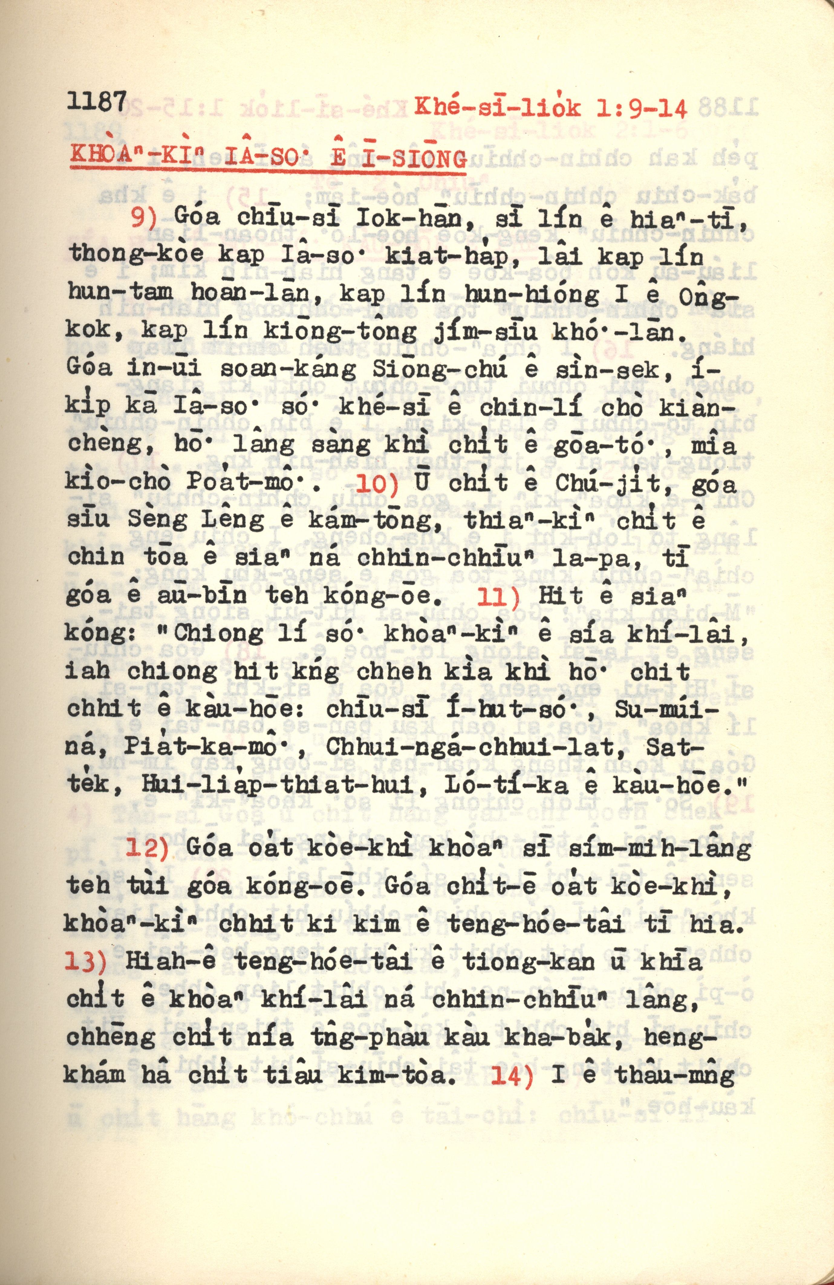 1972年新約紅皮聖經 啟示錄 1 章 9 節到 1 章 14 節
