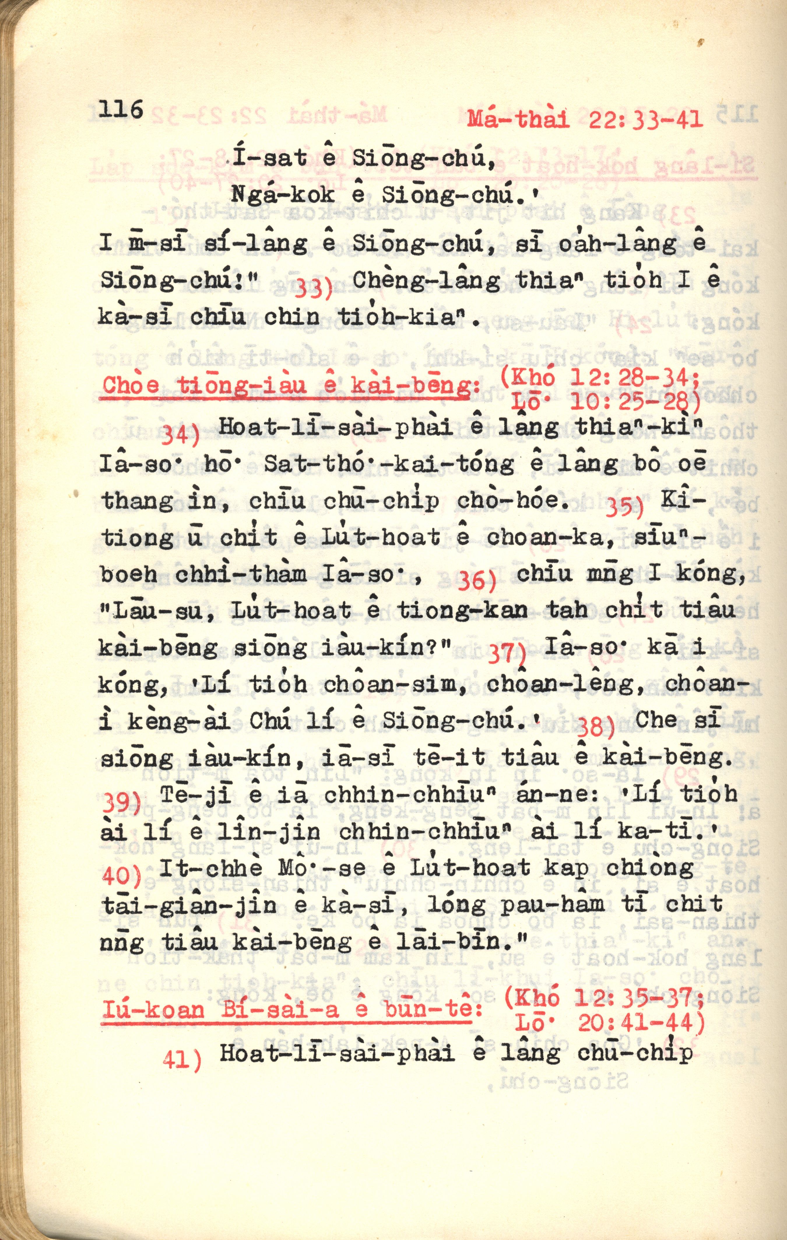 1972年新約紅皮聖經 馬太福音 22 章 33 節到 22 章 41 節