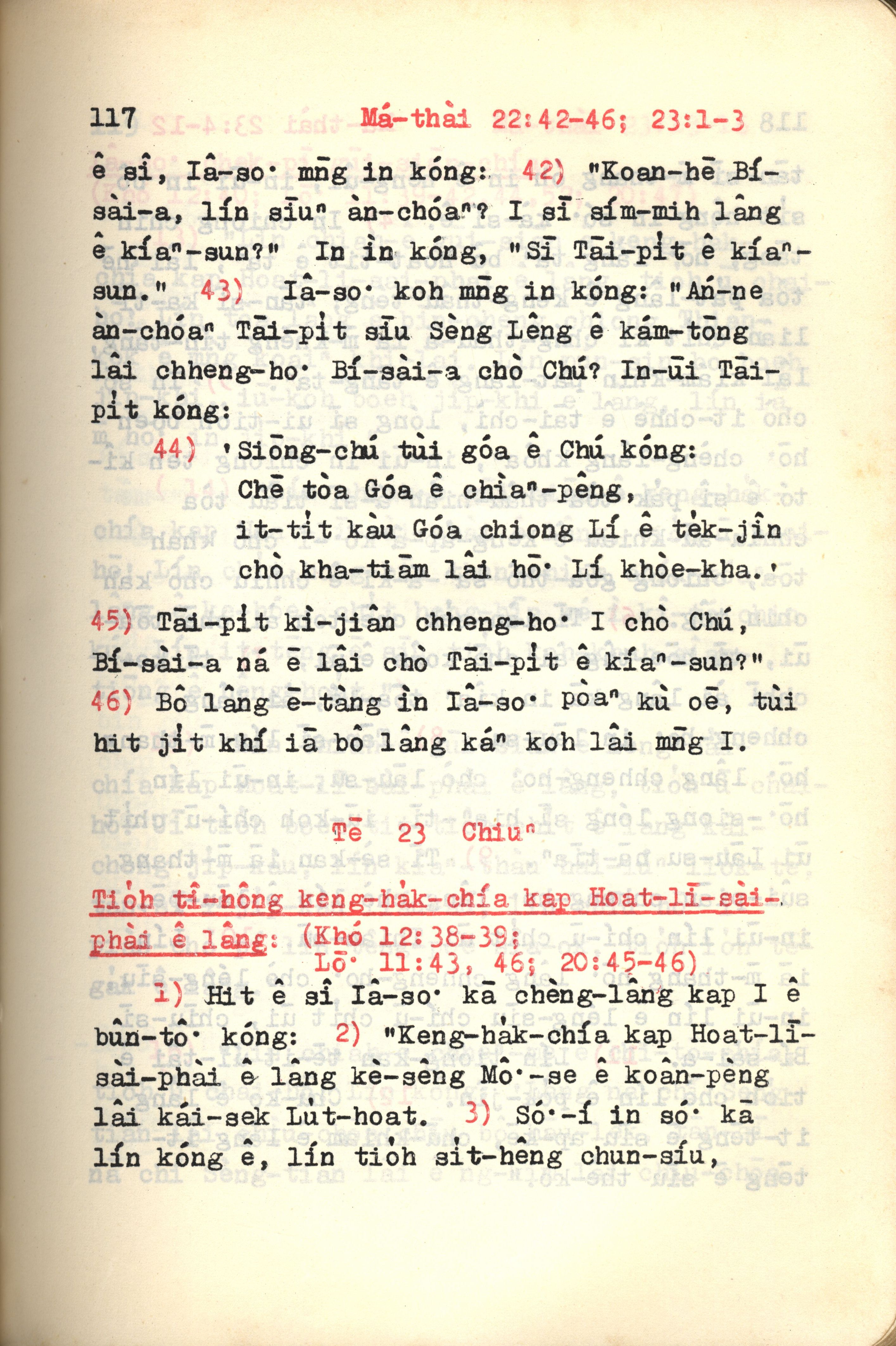 1972年新約紅皮聖經 馬太福音 22 章 42 節到 23 章 3 節