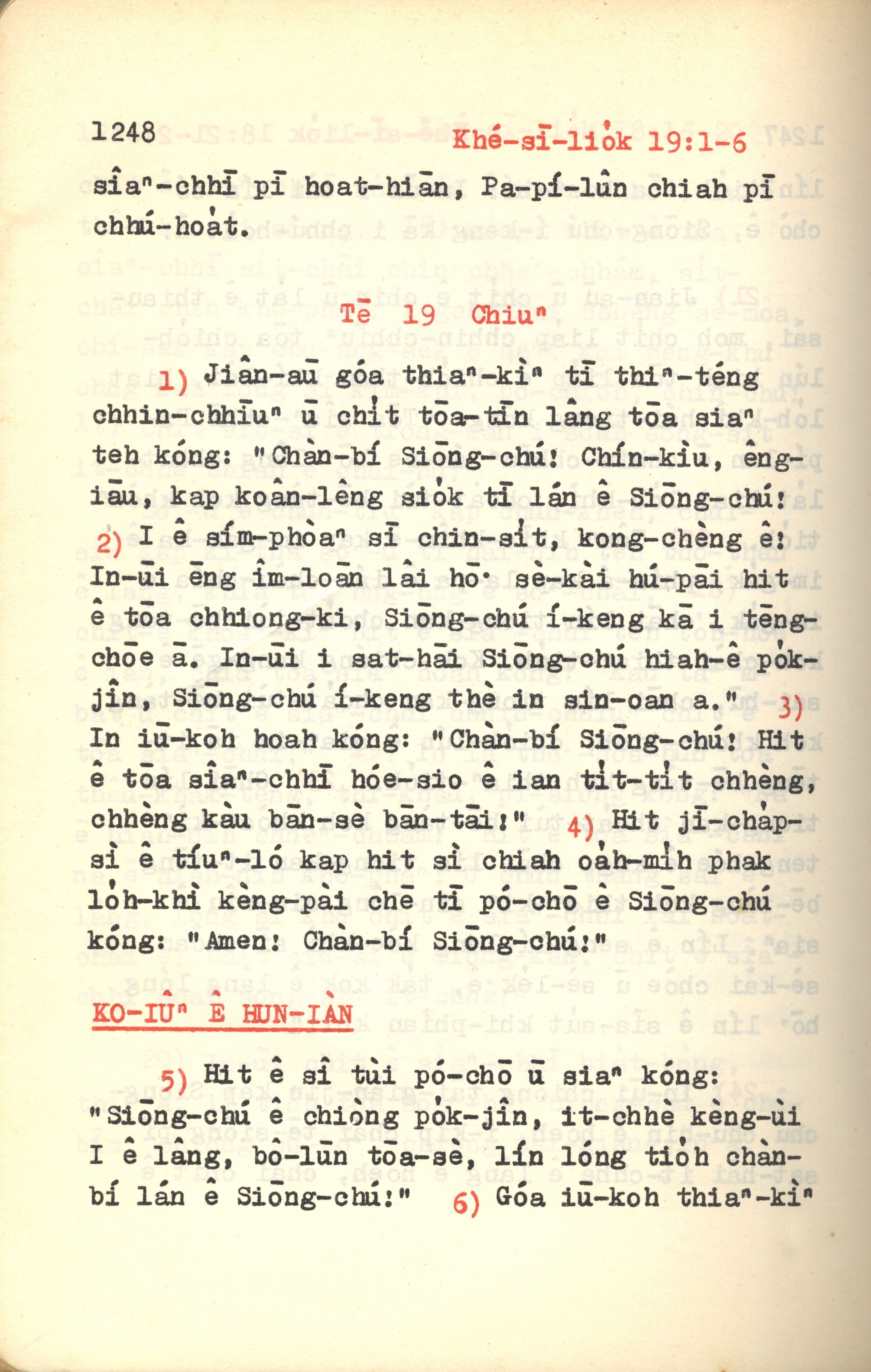1972年新約紅皮聖經 啟示錄 19 章 1 節到 19 章 6 節