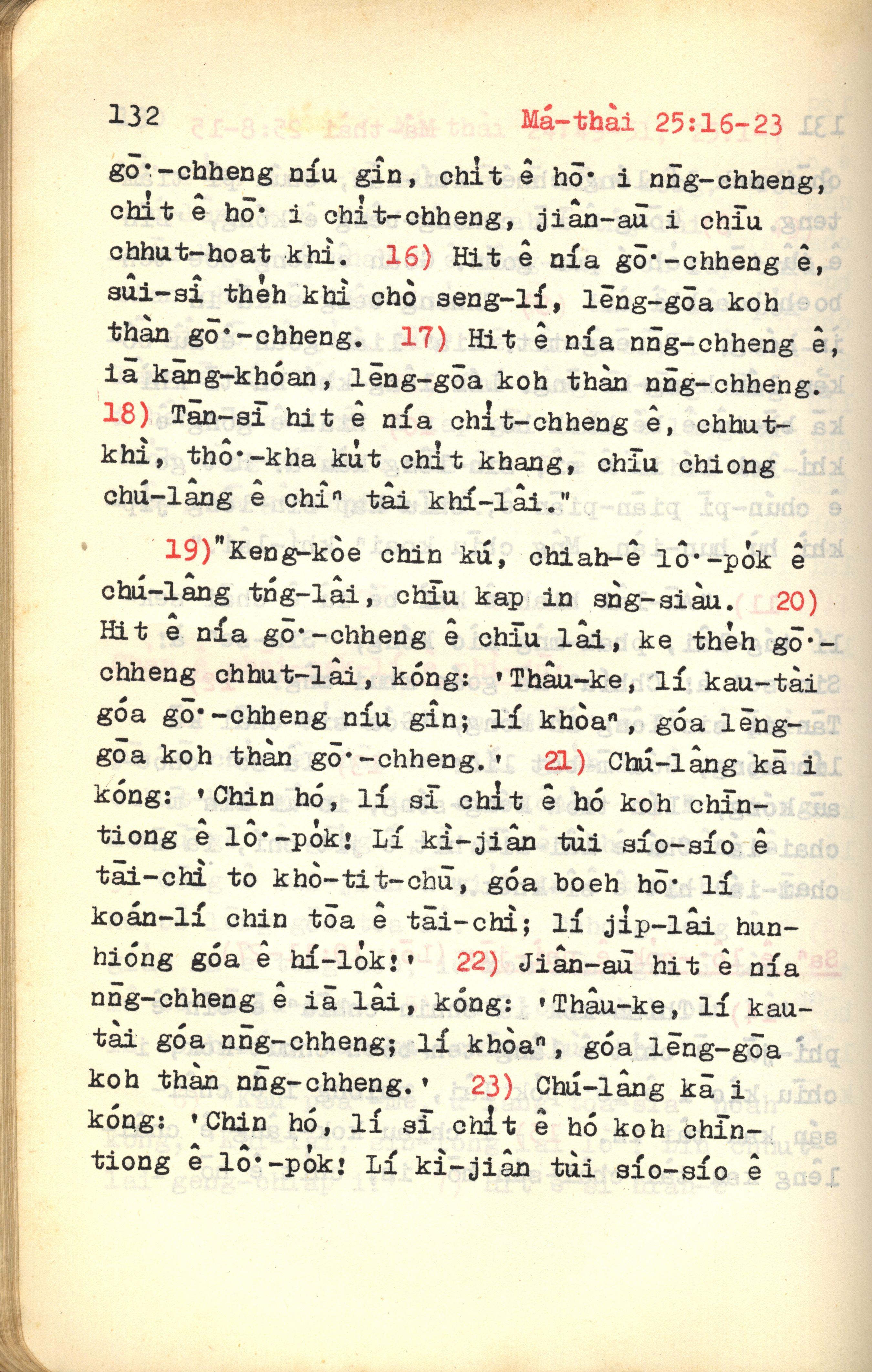 1972年新約紅皮聖經 馬太福音 25 章 16 節到 25 章 23 節