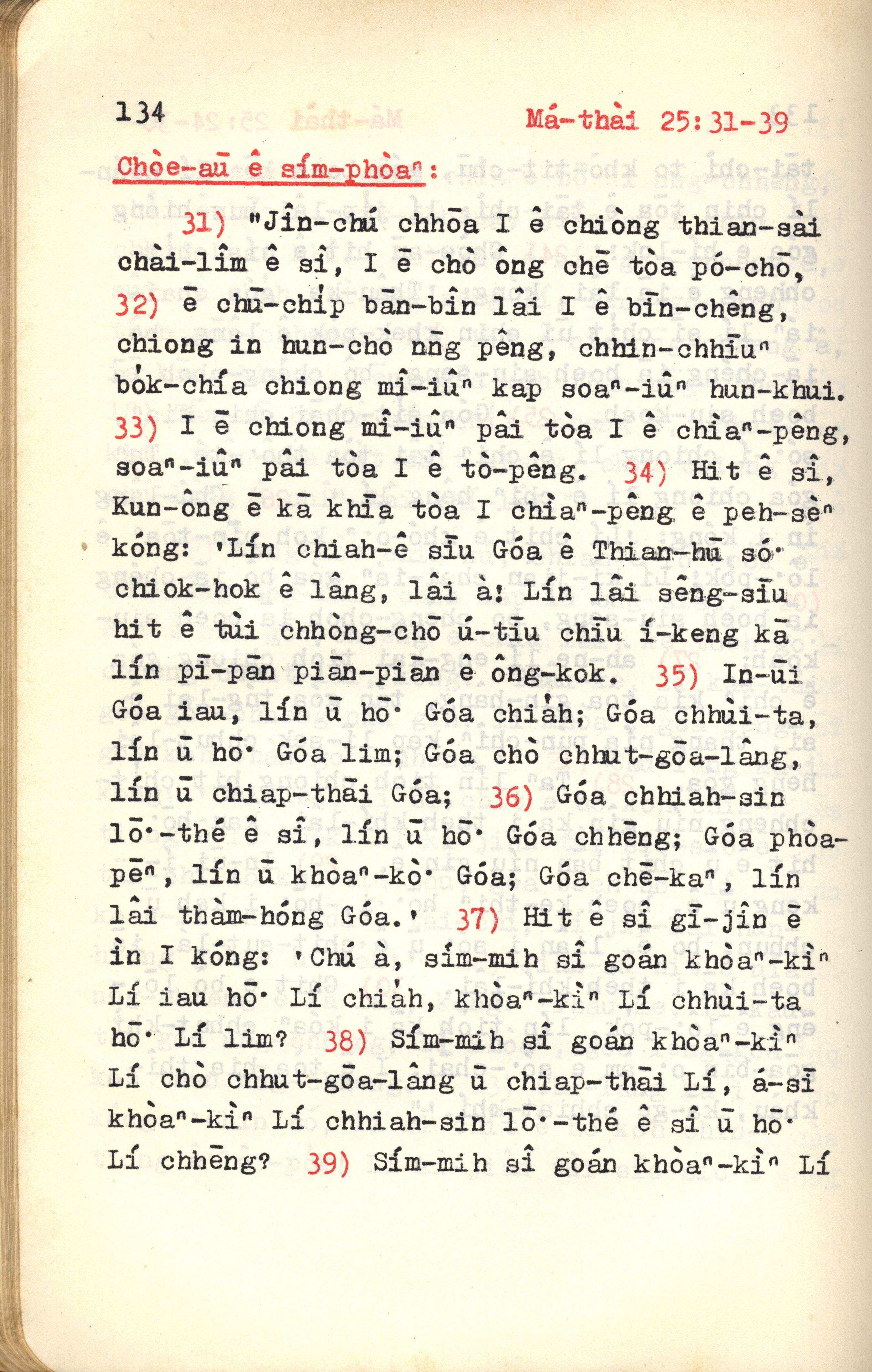 1972年新約紅皮聖經 馬太福音 25 章 31 節到 25 章 39 節