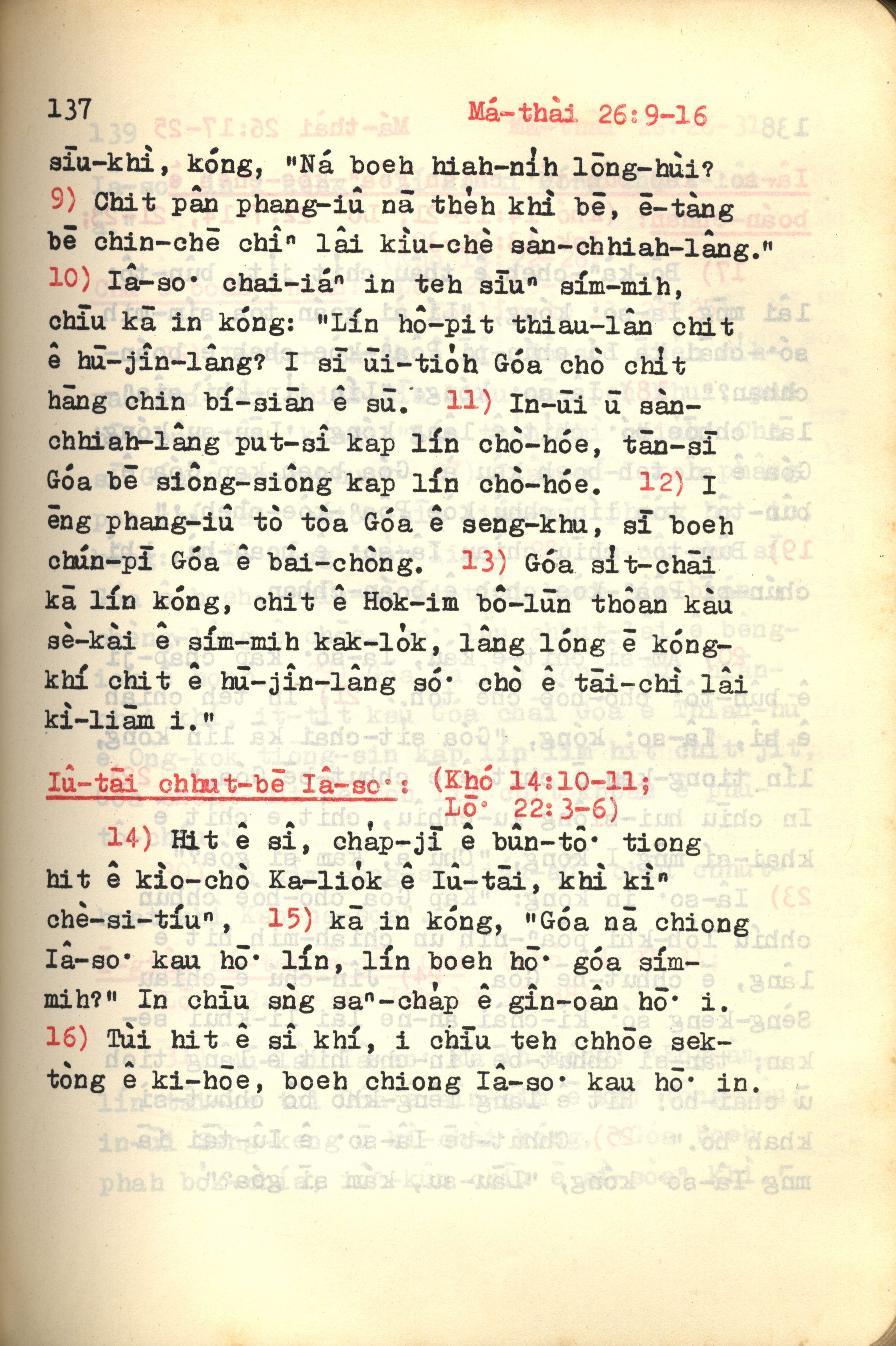 1972年新約紅皮聖經 馬太福音 26 章 9 節到 26 章 16 節