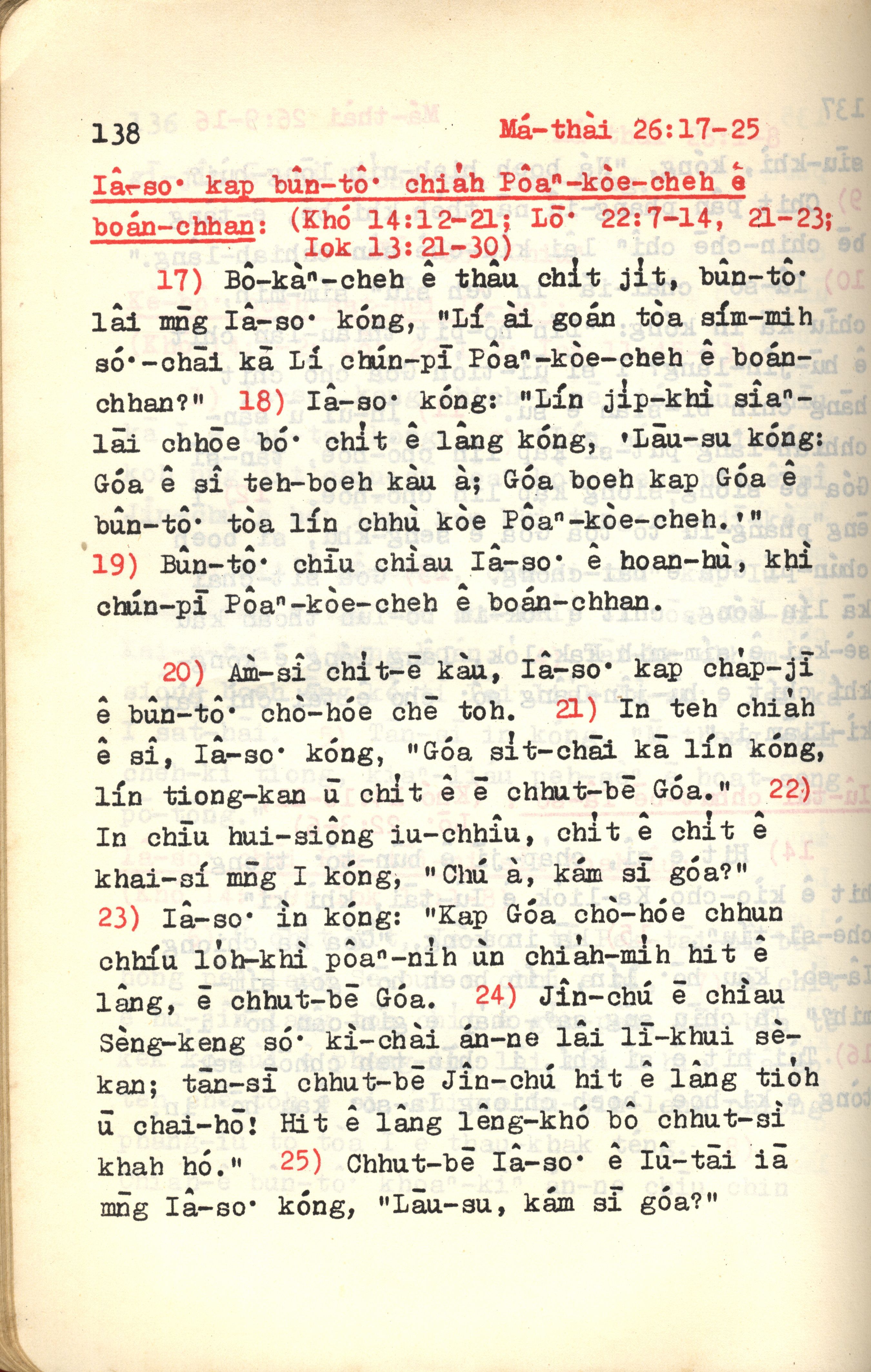 1972年新約紅皮聖經 馬太福音 26 章 17 節到 26 章 25 節