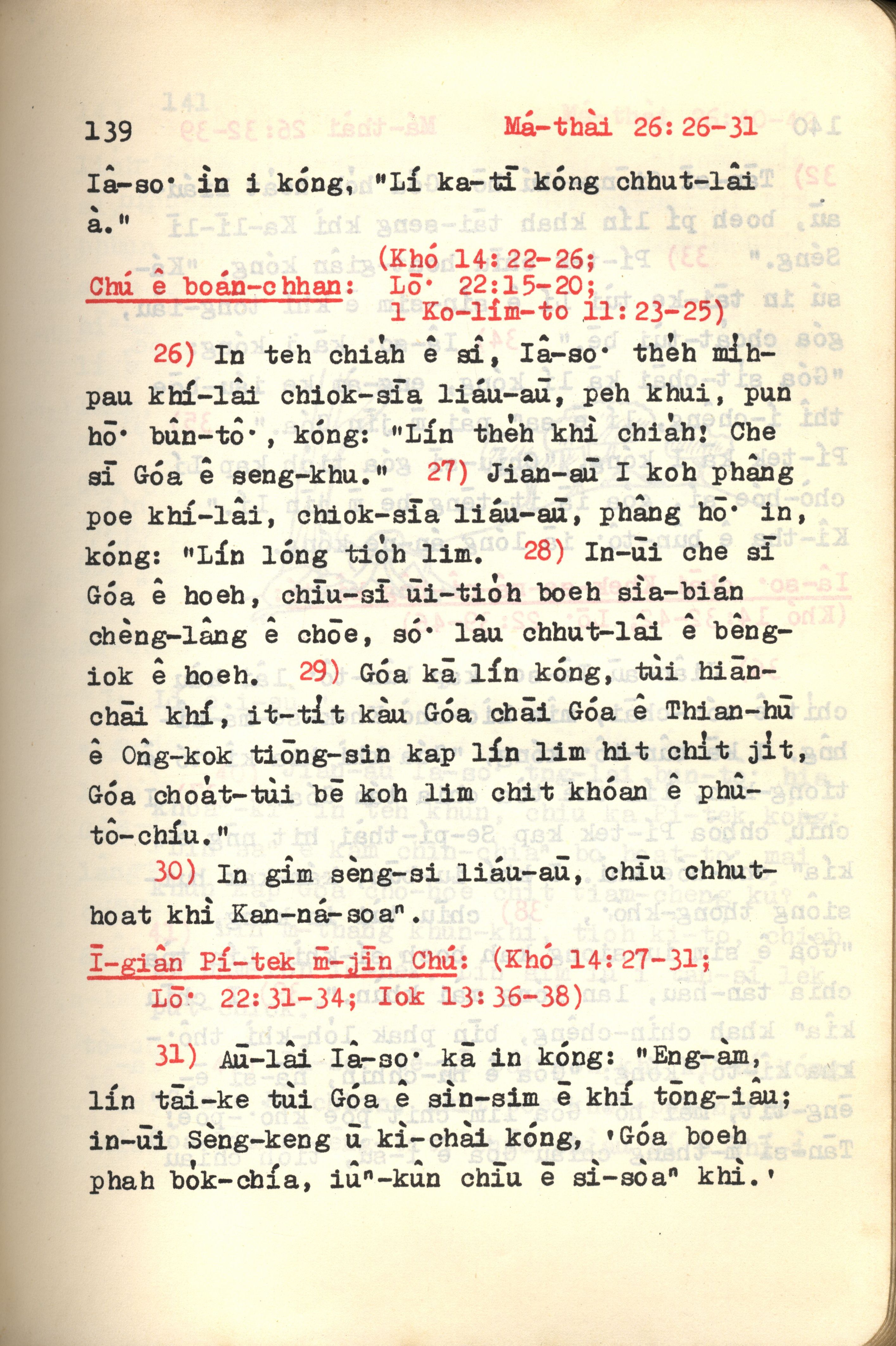 1972年新約紅皮聖經 馬太福音 26 章 26 節到 26 章 31 節
