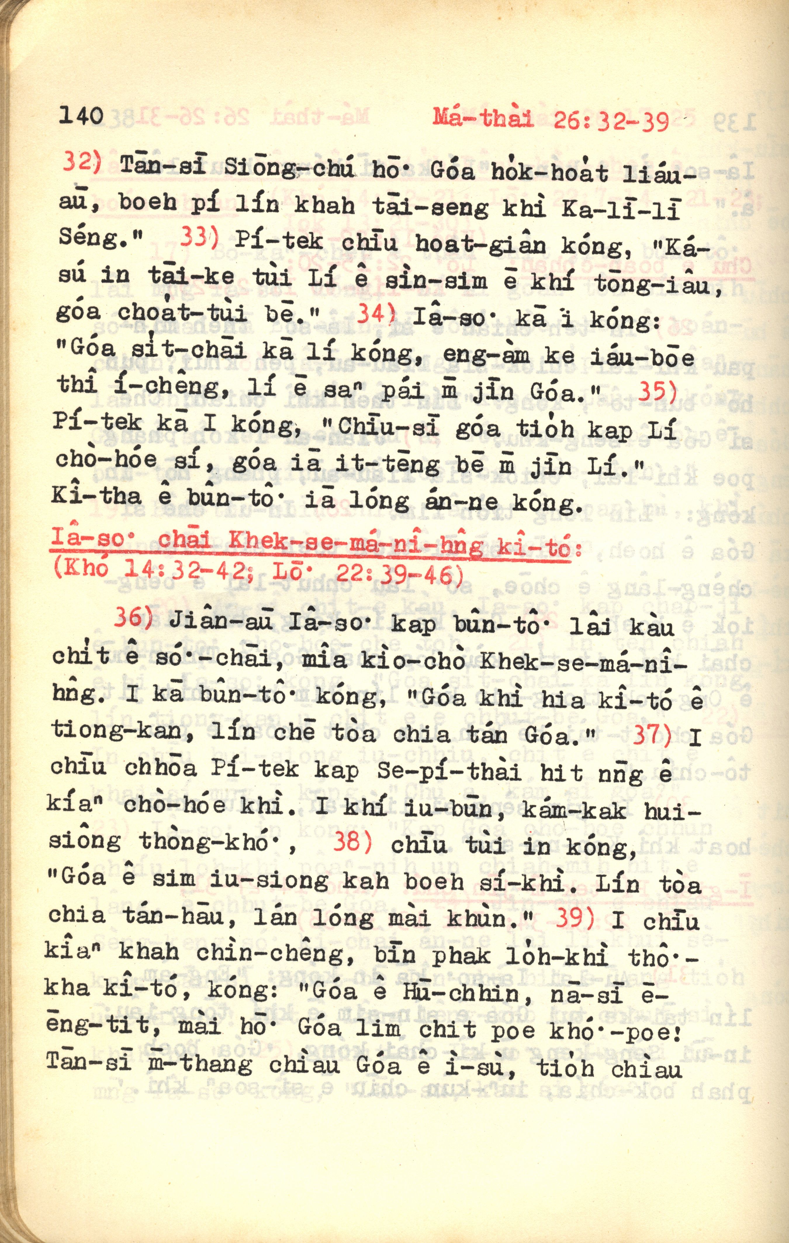 1972年新約紅皮聖經 馬太福音 26 章 32 節到 26 章 39 節
